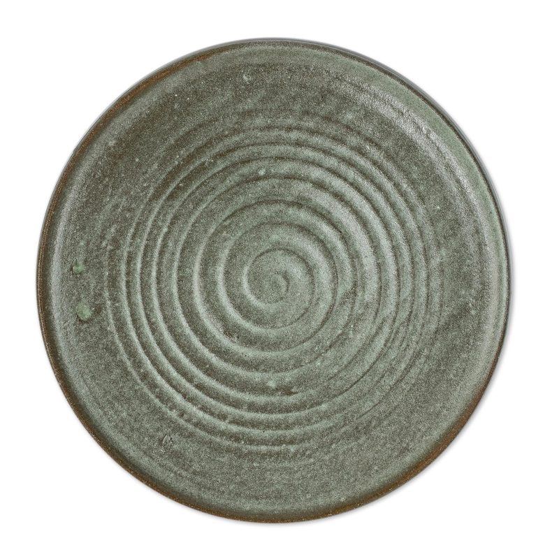 Regina Aguilar of Honduras crafts this pretty pair of luncheon plates, working with three different types of local clay. The spiral-motif plates feature a cool green glaze that allows subtle glimpses of the natural clay color underneath.