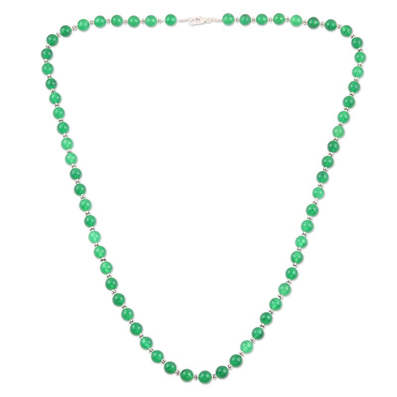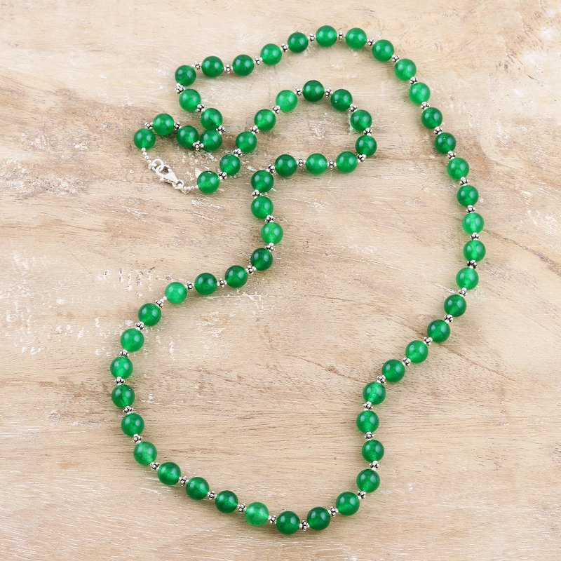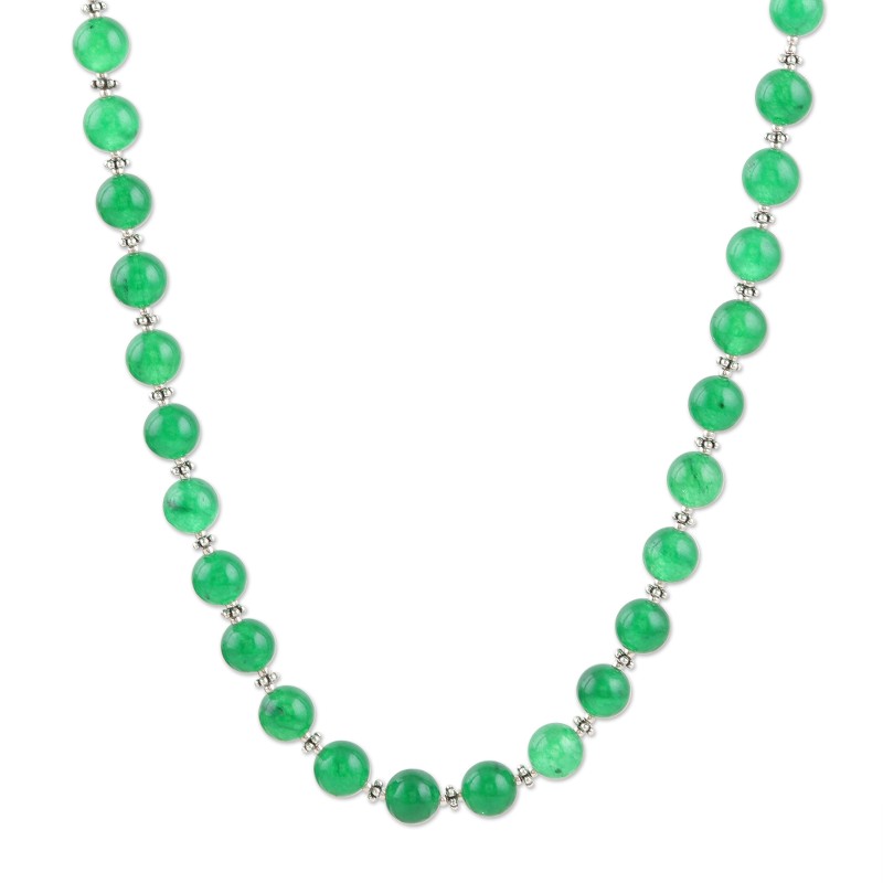 This glowing green necklace designed by India's Shawn Martin will make you feel unstoppable, whether at the office or on a date. The artisan hand threads a row of smooth green onyx orbs to create the necklace, alternating each gemstone with a tiny sterling silver bead.