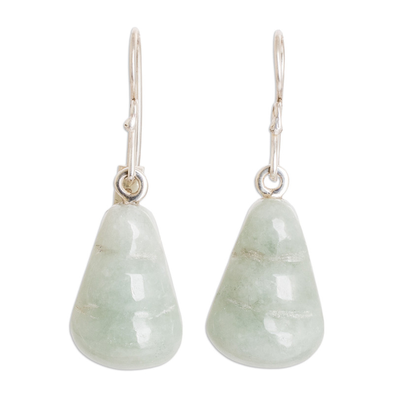 Backed by our 100% Happiness GuaranteeGuatemala's Ruben and Gilda Perez design classic earrings with a modern appeal. Resembling a whirlwind, the earrings are hand crafted with light green jade hanging from sterling silver hooks. The ancient Maya prized jade or Ya'ax Chich, and regarded it as a sacred stone that was to be the source of life and fertility