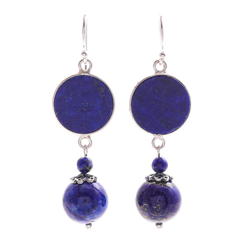 Backed by our 100% Happiness GuaranteeLike a pair of rising moons, the deep blue gems on Somluck Komolmith's dangle earring seem to float on all on their own. Using lapis lazuli, the Thai artisan hand crafts each earring with a flat disk, suspending glossy lapis beads below. Polished sterling silver accents finish the pair with heavenly shine.