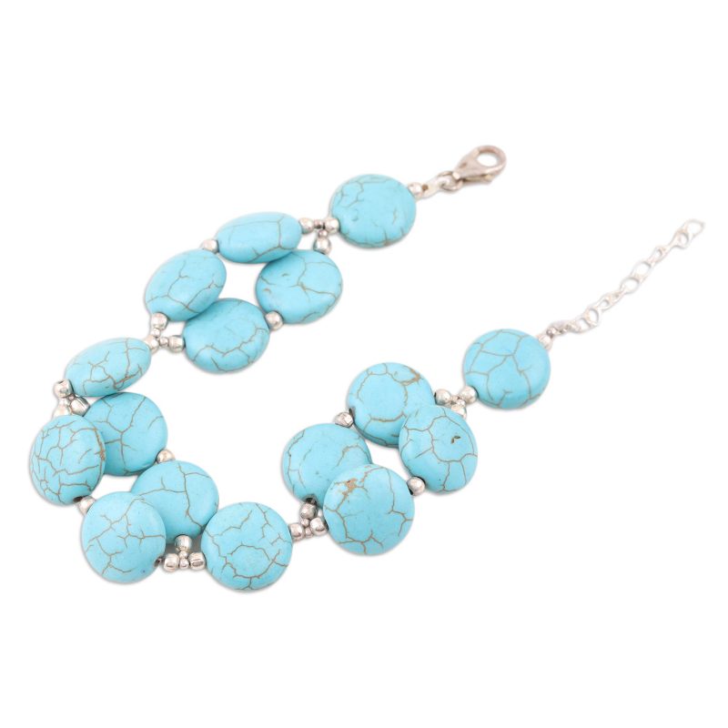 Backed by our 100% Happiness GuaranteeDesigned by Shawn Martin in India, this beautiful blue bracelet is sure to lift your spirits straight into the stratosphere. The artisan hand crafts the bracelet with calcite, accenting the sky blue gems with petite sterling silver beads and a lobster claw clasp that shines.