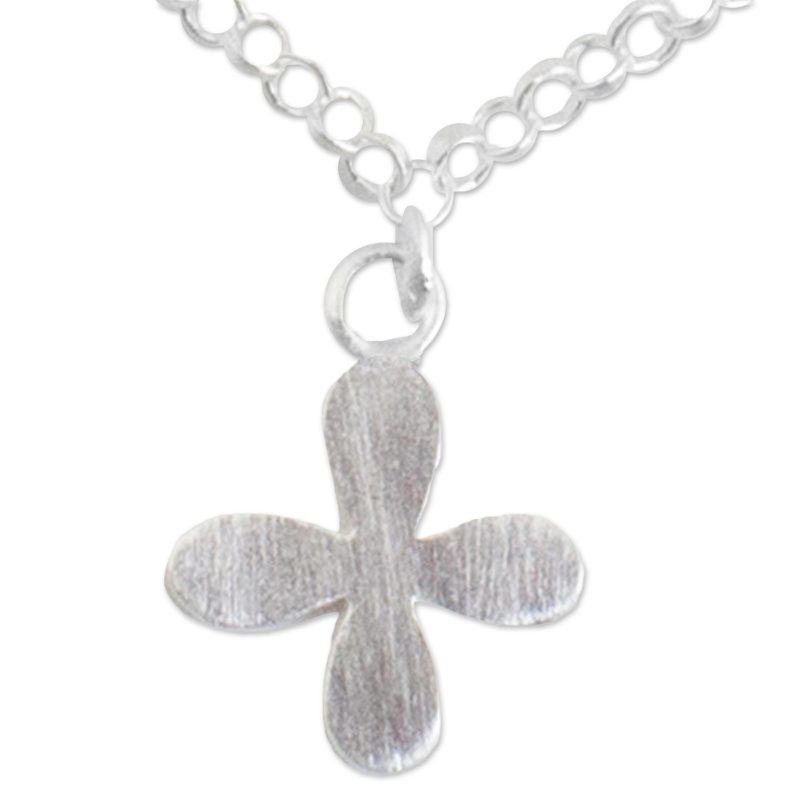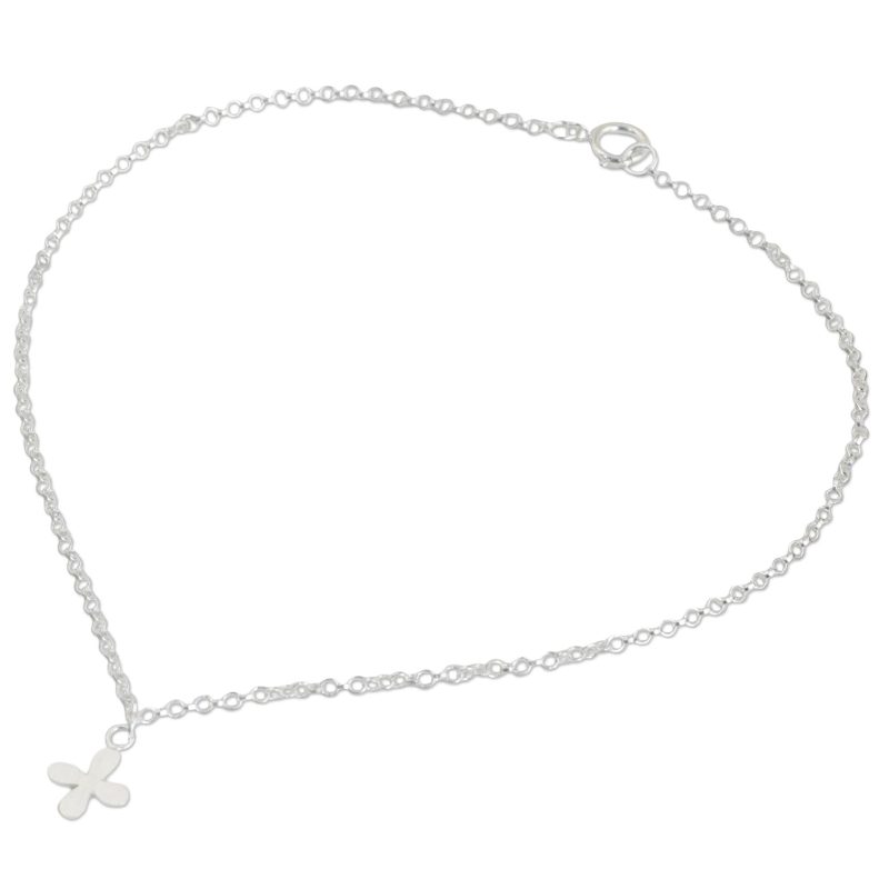This precious sterling silver anklet presented by Jantana of Thailand features a four-leaf clover shaped pendant with a brushed-satin finish. This dainty pendant hangs on a delicate chain with circular links, making this anklet a chic addition to any outfit.