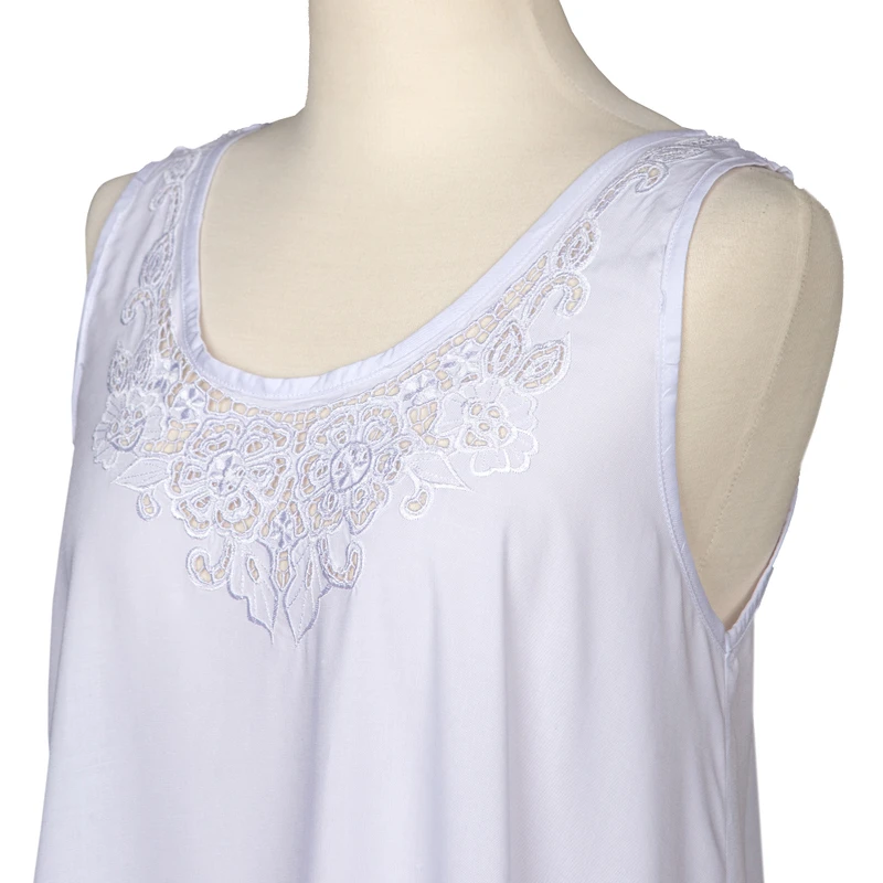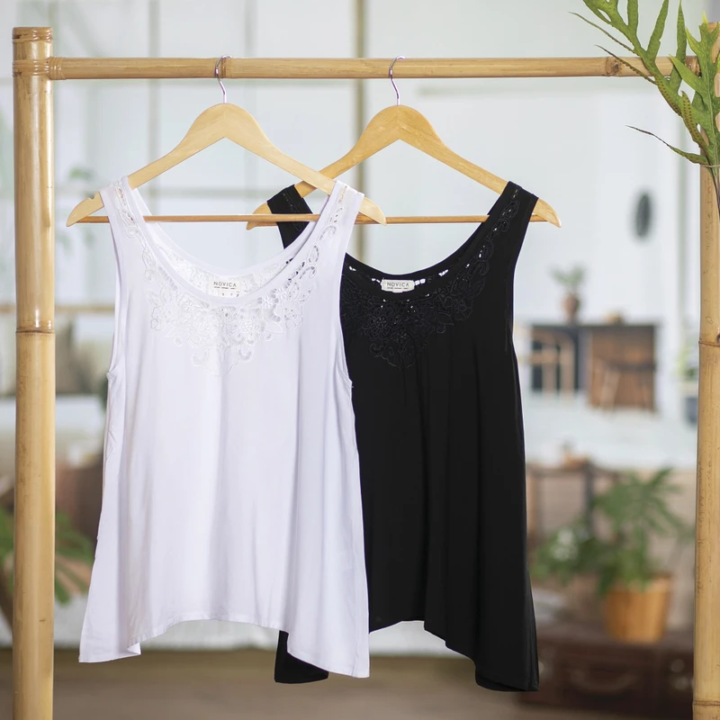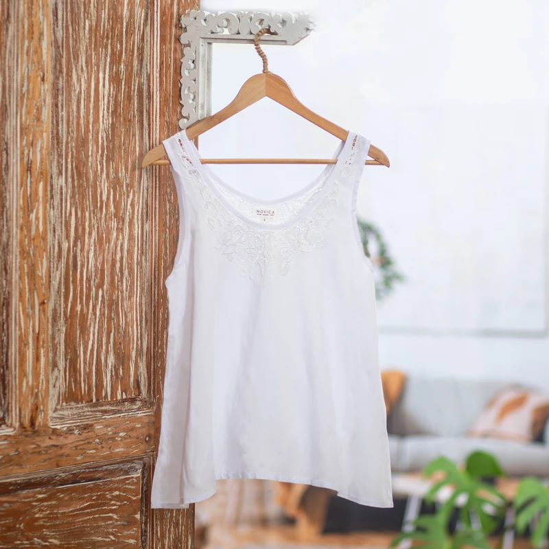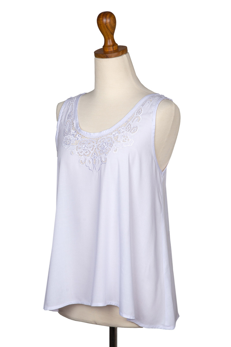 Backed by our 100% Happiness GuaranteeHand-embroidered with an openwork floral motif, Made Suciati's sleeveless blouse is a breezy way to pass a warm day. Crafted from rayon in the Balinese artisan's workshop, the blouse features a relaxed A-line fit and a classic scoop neck.