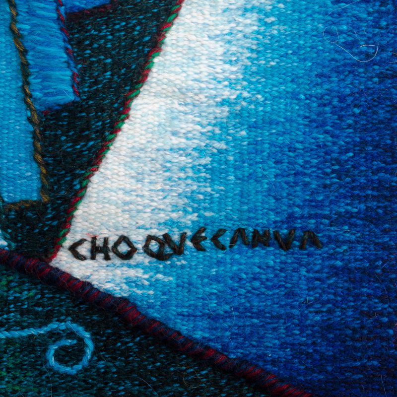 Backed by our 100% Happiness GuaranteeA trio of musicians serenades the mountains and oceans of Peru in this magical signature tapestry by Teofilo Choquecahua. He hand-weaves it on a traditional loom using 100% alpaca wool and adds contrasting textures for depth and visual interest.