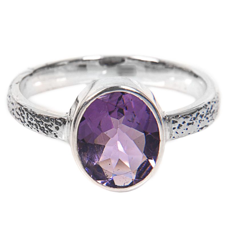 A one-carat stone of amethyst shines a beautiful rich purple in this solitaire ring by Wirabhuwana. With a modern Balinese design, this handcrafted ring is simple and elegant.