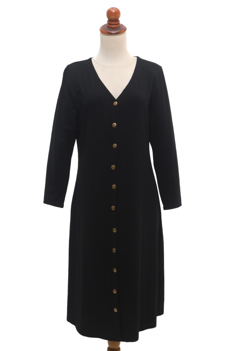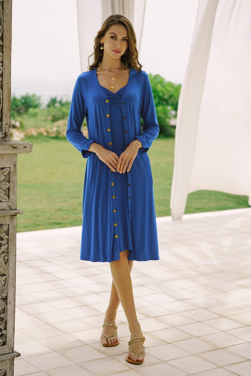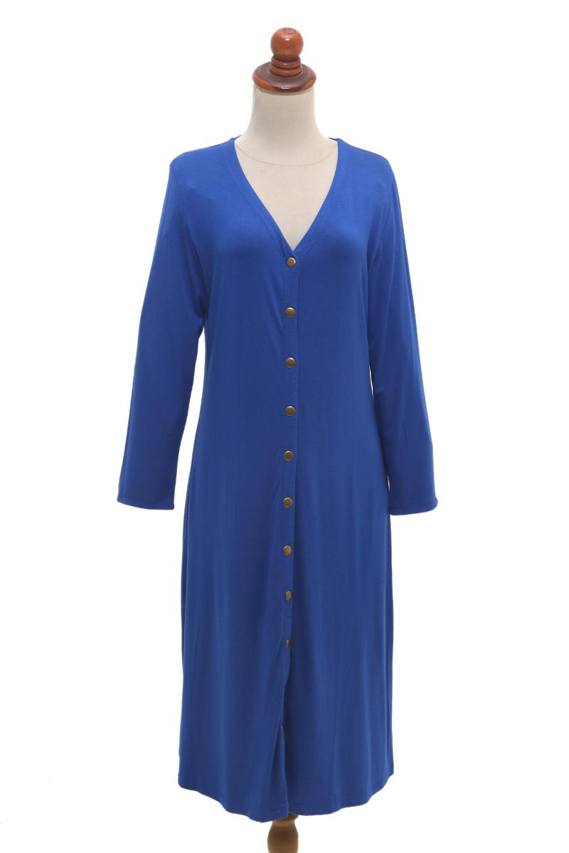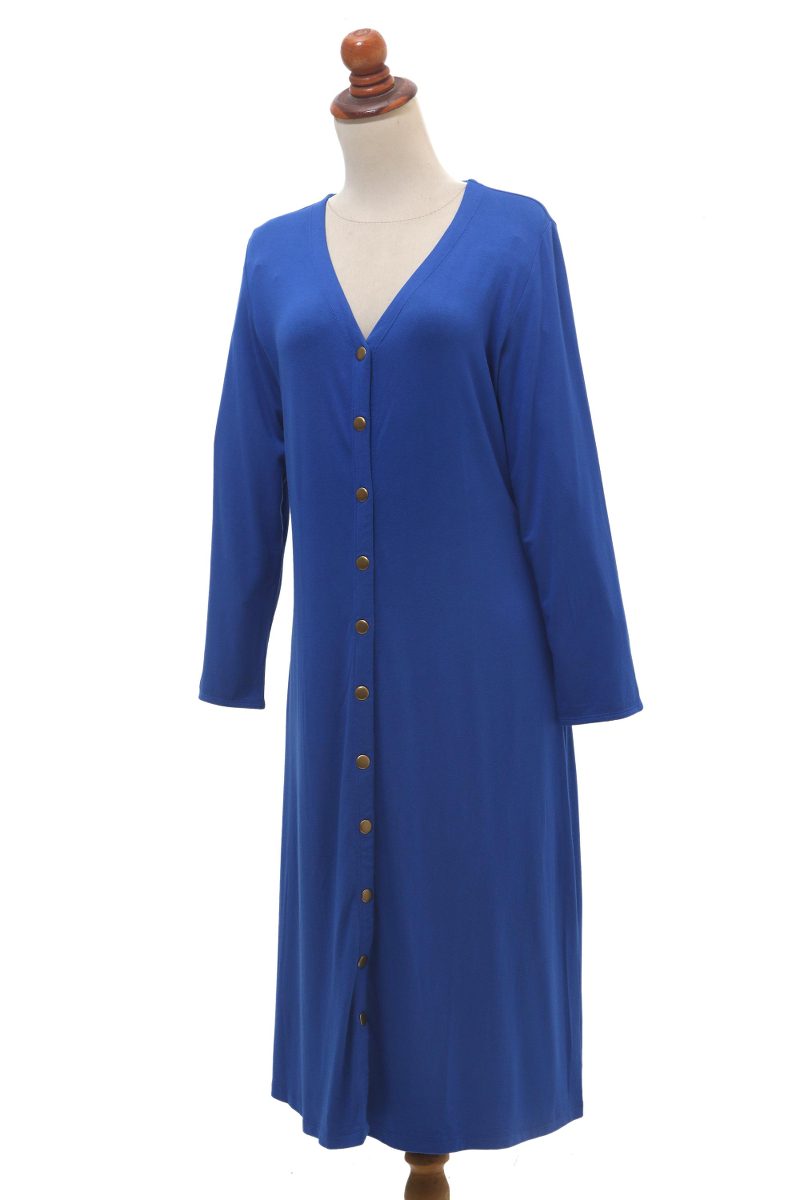 Can't decide what to wear? Try this shirtdress designed by Bali's Janet Molly that doubles as jacket! Crafted from smooth, soft modal with just a hint of spandex, the dress features a long row of snap buttons, long sleeves, and a comfortable, relaxed fit. Wear it alone as a dress, or as an extra layer when the weather's chilly.