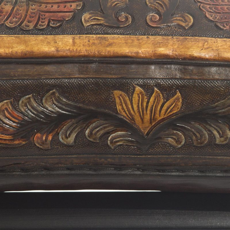 Abel Rios, is a very gifted artist. His ‘Bird of Paradise footstool has become a favorite item. I m sure of its heirloom position. One of the kids will fall in love with it. I made a small change by replacing the zinc bolts with black ones. I also sent word and photos back through the Novica networks as these may not be readily available to the artists.