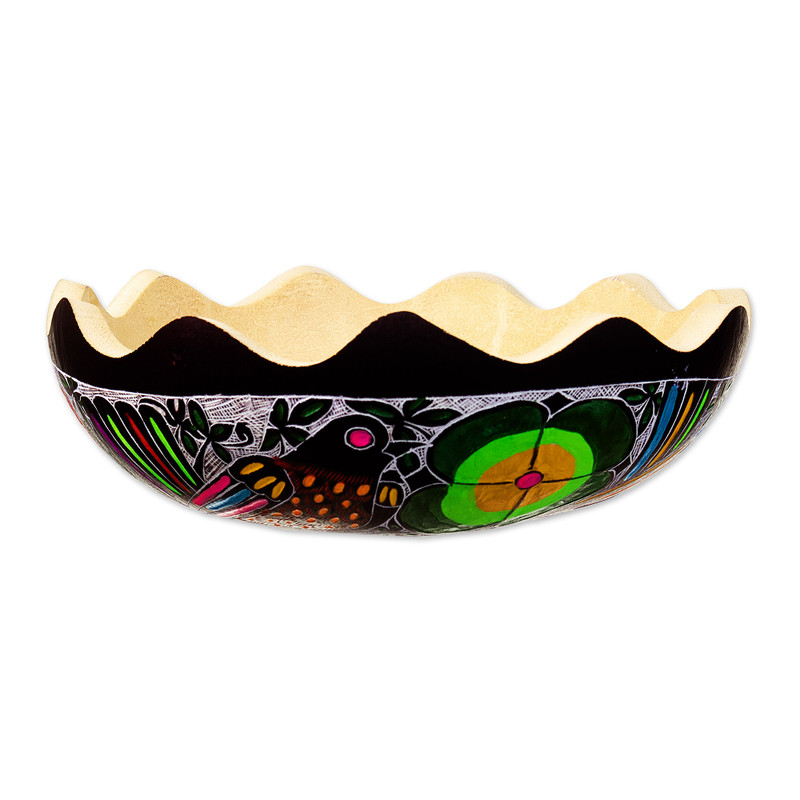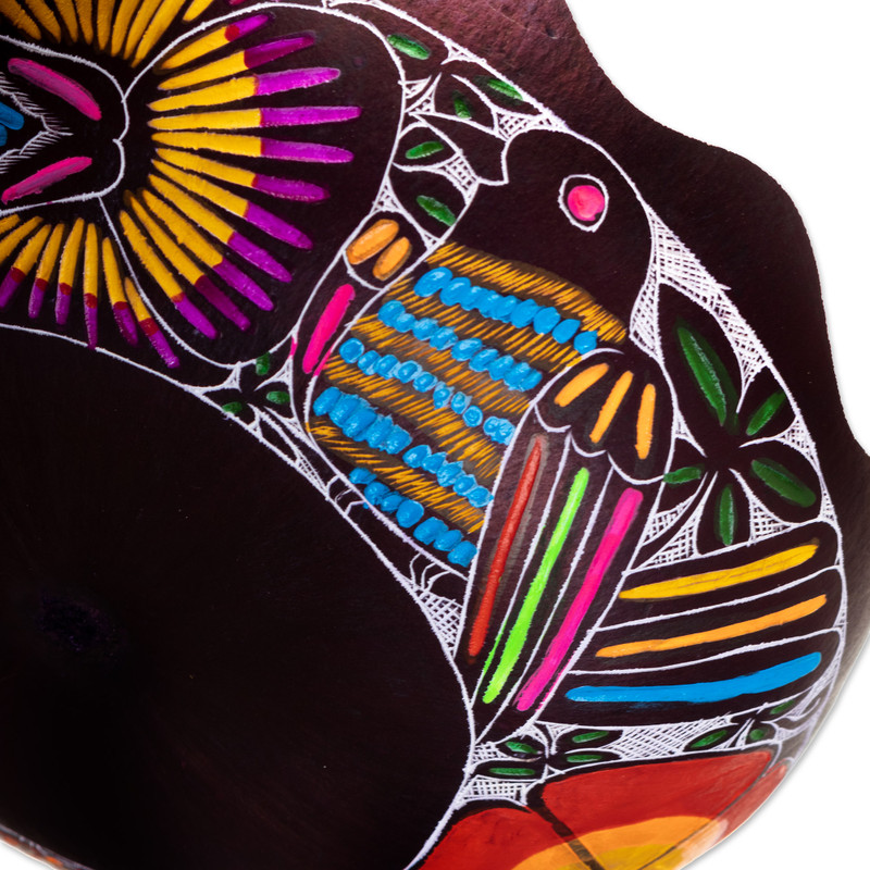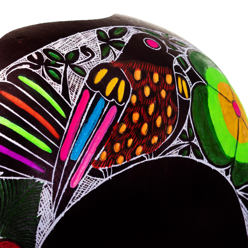 Never again lose small belongings with this eye-catching catchall. Teodolinda Seguil from Peru chisels and hand-paints a dried gourd for this gorgeous item embellished with Andean flowers and details. This lovely item will be a perfect home decoration for any interior!