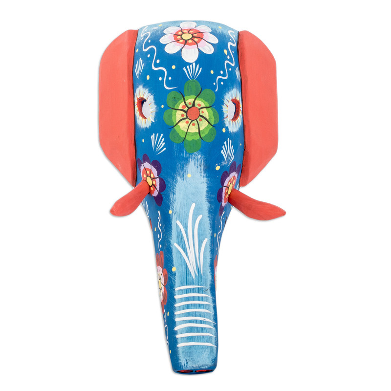 An elephant glares at your soul with a majestic aura that invites you to live the spring season with a wise heart. Artisans Juan and Carolina from Guatemala honor the magnificent spirit of the elephant with this traditional pinewood mask featuring a palette of orange and blue hues as a symbol of optimism and intuition. Floral details complete the design, allowing for a magical illusion that allures the eye, while an agave cord makes it easy to set the piece.
