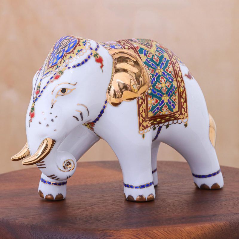You can find our benjarong porcelain figurine 'Aristocratic Elephant' by Panida Tamjun in categories such as Animal Themed Sculpture and Porcelain Sculpture. Enjoy exploring these sections for other Novica treasures.