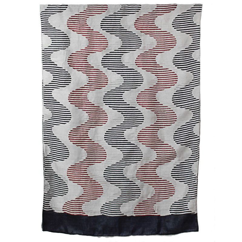 Backed by our 100% Happiness GuaranteeHandwoven from 100% silk, this shawl features block-printed wave motifs. Indian artisans Rajnandinee and Srabonti work together to create this magnificent wrap, elaborating it with maroon and black on pale beige.