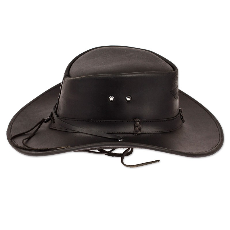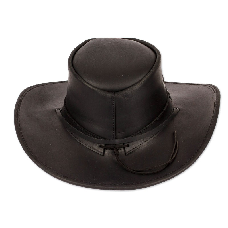 Reliving the classic era, Mexican artisan Gabriela Veronica shows the world her magnificent talent and professional eye with a dapper accessory made entirely from leather. Crafted in a black hue, this refined hat has stitch details on the top, forming little floral motifs. Equipped with a matching hatband and braided details, the hat also features a polyester-accented interior for comfortable wear.