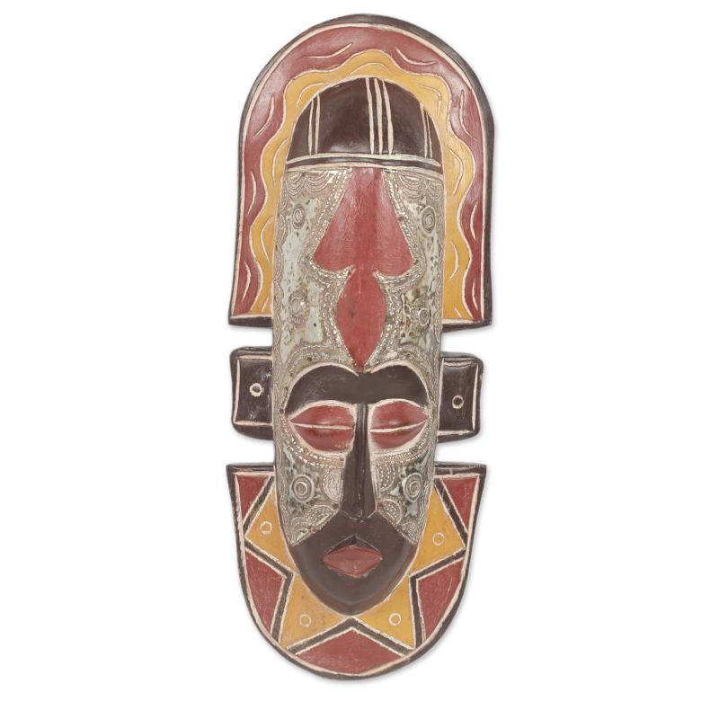 Backed by our 100% Happiness GuaranteeBy Sefah Mohammed, this handsome mask comes from the Ga people near the city of Accra. He carves the piece by hand, adding beautiful colors, hand embossed aluminum and applications of white clay. "Such masks are used when Ga people go fishing with the believe it will help them harvest more fish," the artisan explains.