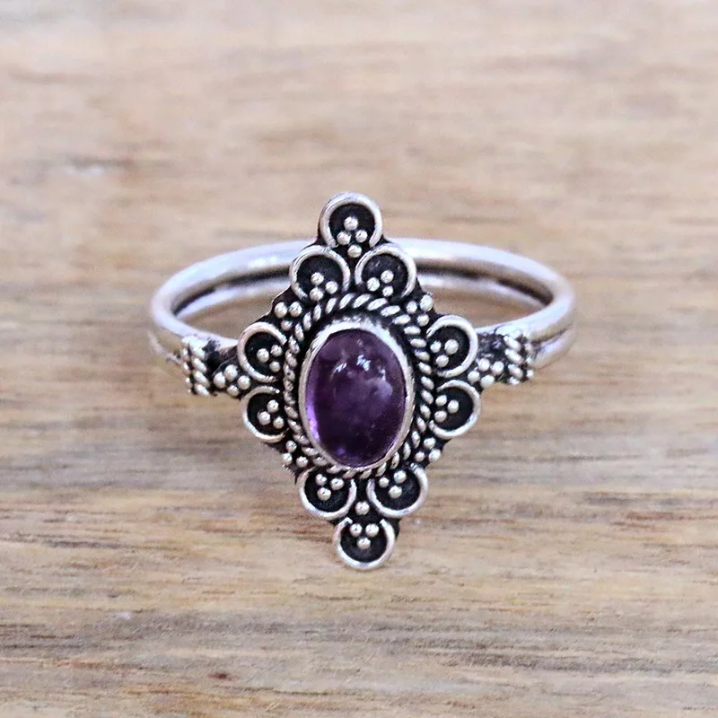 Backed by our 100% Happiness GuaranteeFor a dreamy accessory to add to your wardrobe, this cocktail ring is designed by Bali's Ketut Sulastri. She handcrafts the ring of sterling silver with an intricate crown that is centered by an oval cabochon of gleaming purple amethyst.