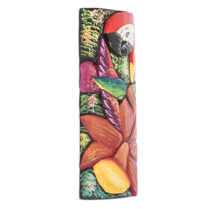Backed by our 100% Happiness GuaranteeArtisans of the Caronco Maleku Association work with balsa wood to create a hand-painted mask inspired by the fauna of Costa Rica. Colorful hues embellish each detail, enhancing the macaw and hummingbird figures of the artwork, both symbolizing joy.
