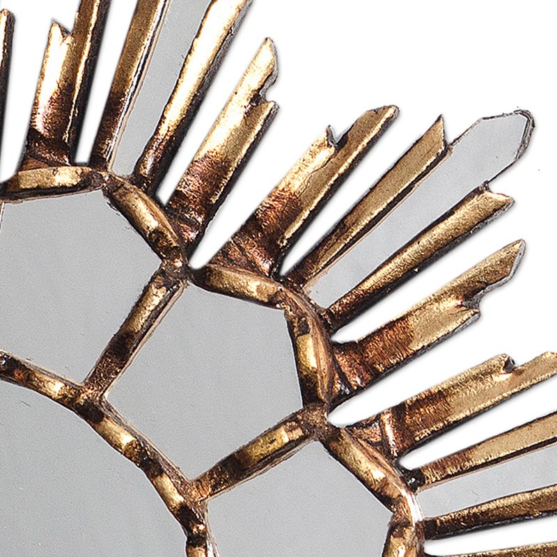 Backed by our 100% Happiness GuaranteeInspired by the style of reverse-painted glass, elaborate wall mirrors like this one were born. Peruvian artisan Gliseria Soto handcrafts this mirror from mohena wood, gilded in bronze for a golden hue. Angular shapes are interspersed with mirrored bars that gleam like the rays of the sun. The round mirror at the center is surrounded by an array of mirrored pentagons.