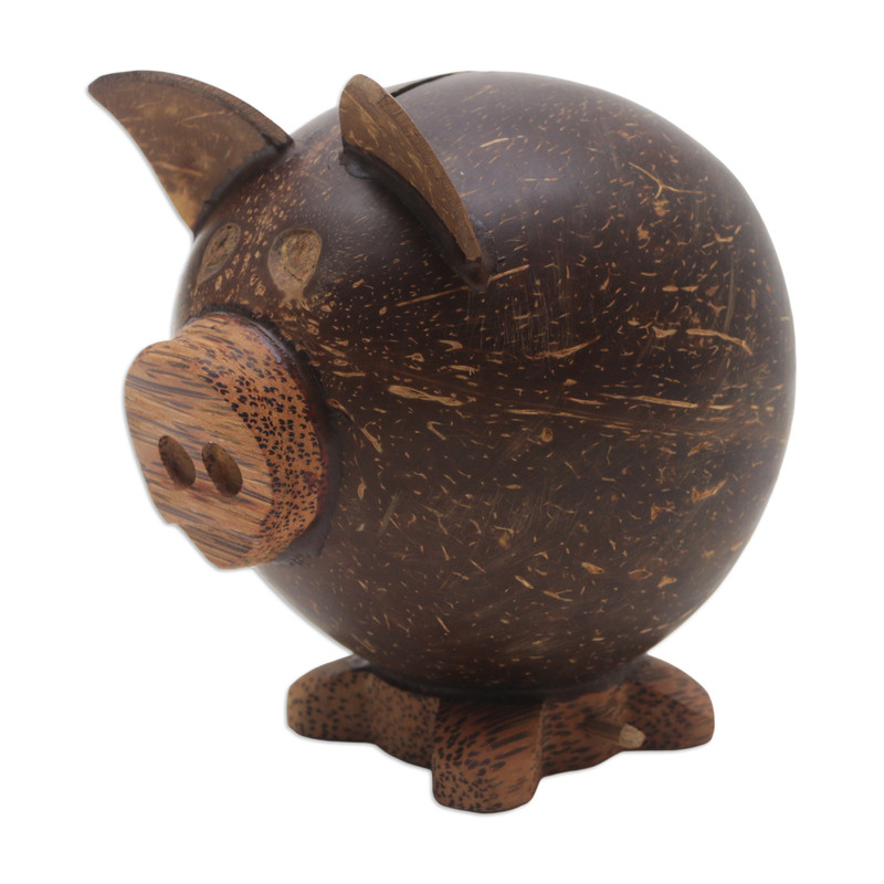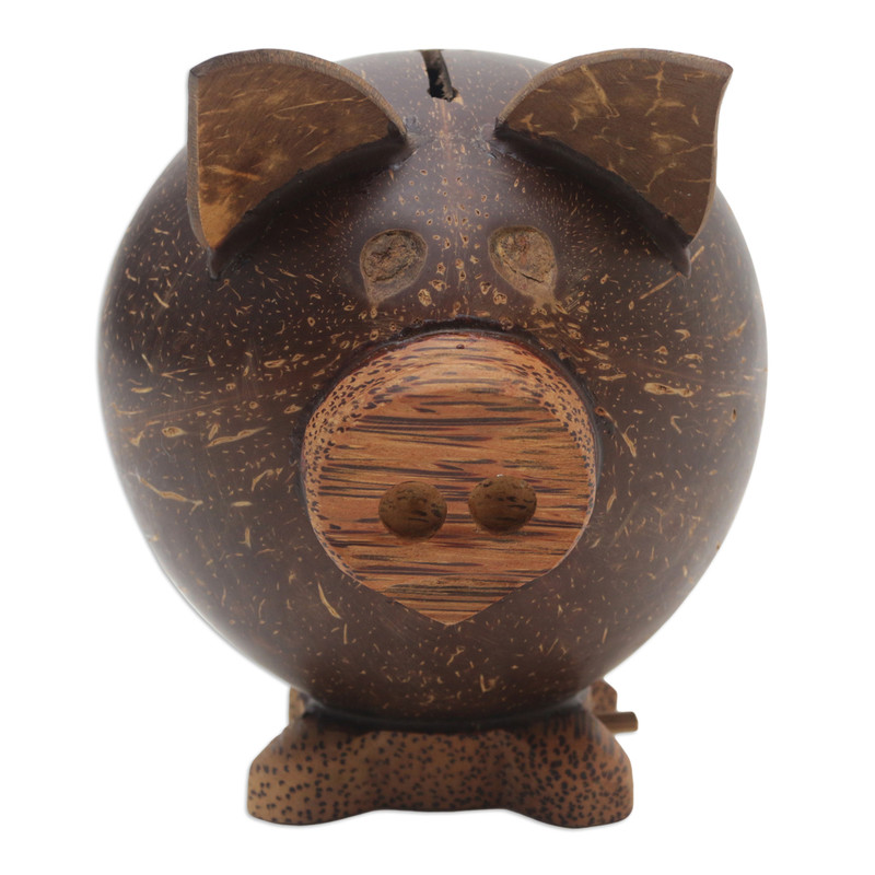 You can find our coconut shell coin bank 'Prosperous Piggy' by Sindhu Nata in decor accessories categories such as Rustic Home Accents and Wood Home Accents. Enjoy exploring these sections for other Novica treasures.