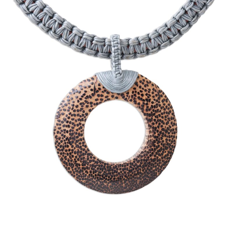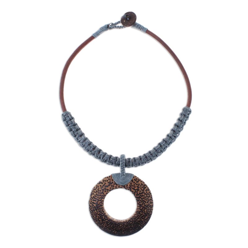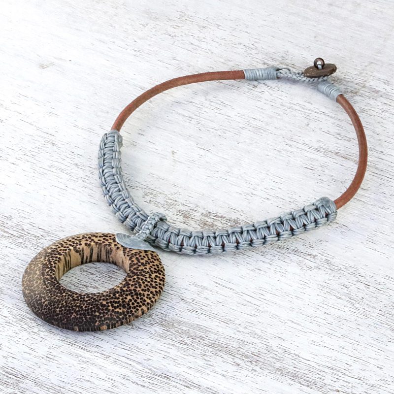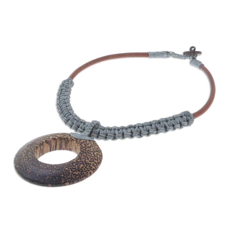 Backed by our 100% Happiness GuaranteeAdorn your outfits with a nature-inspired accessory, handcrafted by Thailand artisan Sasithon Saisuk. Gorgeous waxed cord in a cool grey hue is handwoven around genuine leather. An alluring coconut wood pendant graces the necklace.