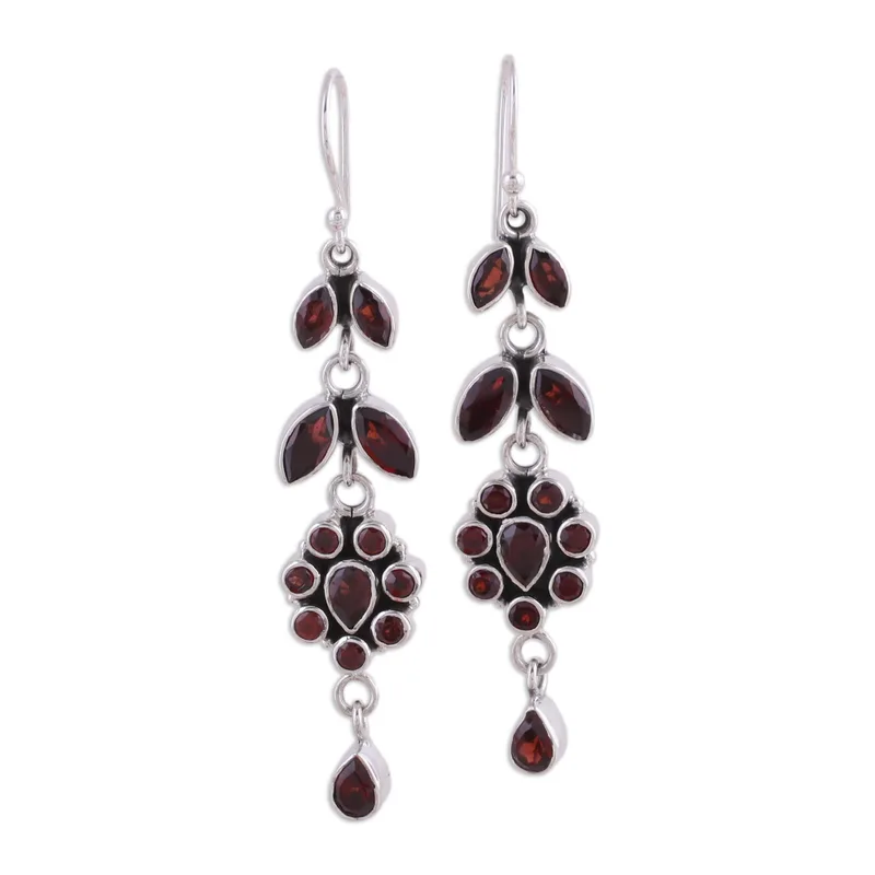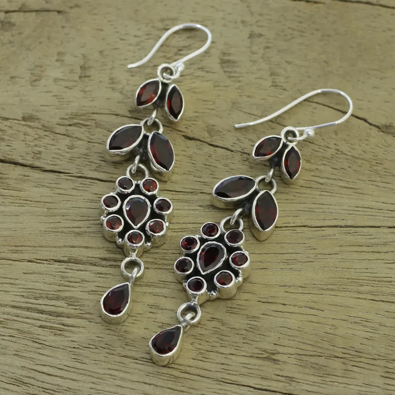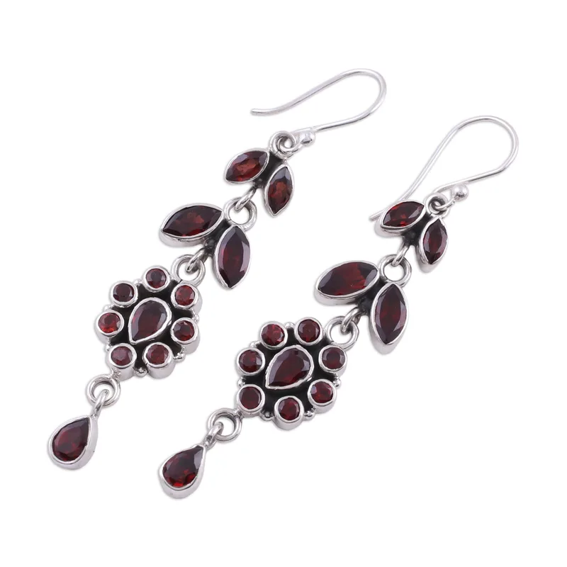 Backed by our 100% Happiness GuaranteeBlooming on sterling earrings, red roses open layered petals. These beautiful earrings by Neeru Goel are studded with faceted garnets, evoking the flower of love. A single teardrop dances beneath. Features approximately 30 gemstone carats.