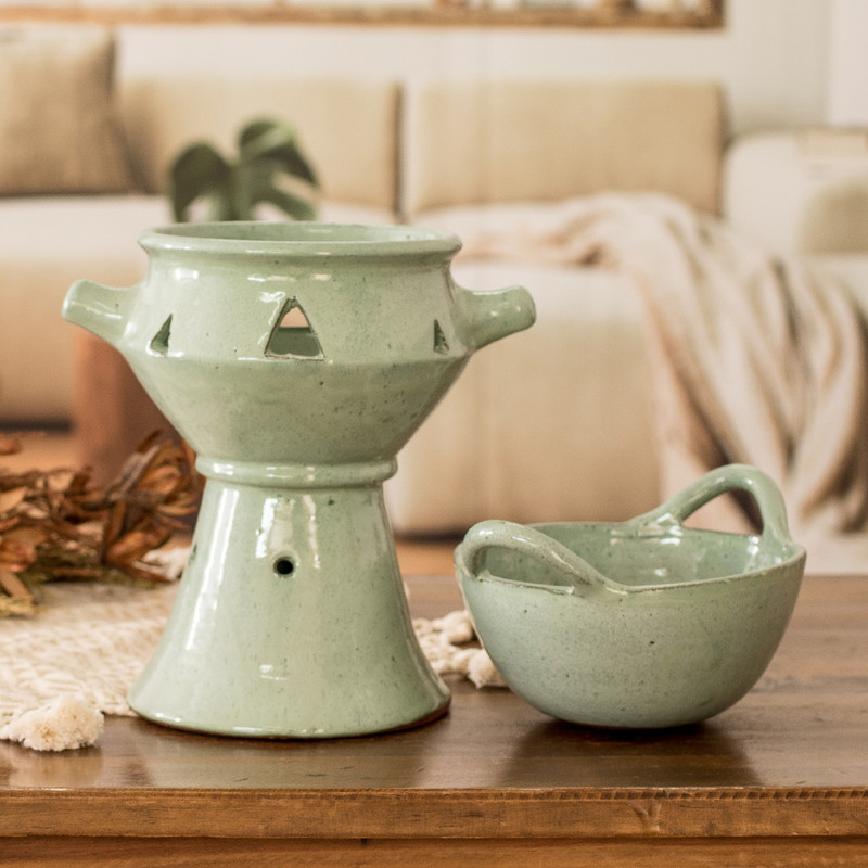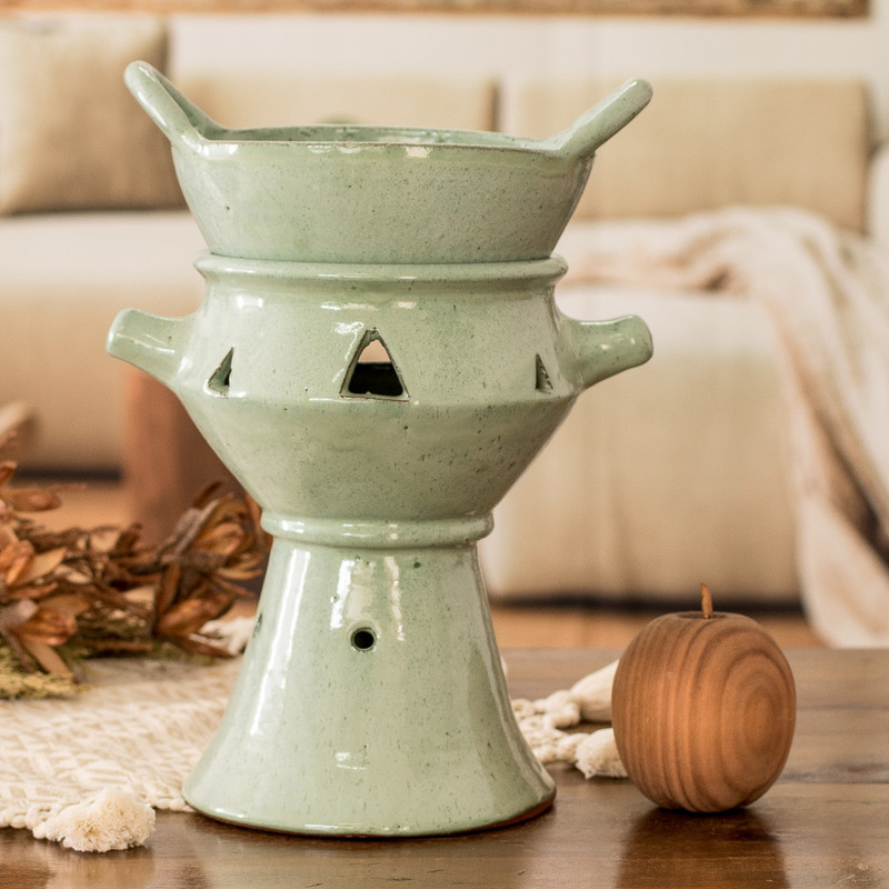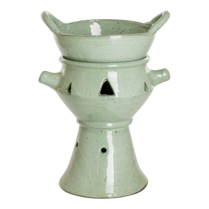 Backed by our 100% Happiness GuaranteeExperience the culinary delight of communal dining with this stylish and functional ceramic fondue pot, meticulously handcrafted and painted by Honduras' Regina Aguilar. Designed to maintain cheese or chocolate at the perfect consistency for dipping, it transforms ordinary meals into extraordinary experiences where laughter and conversation flow freely. Its exquisite antique finish adds a touch of sophistication to any gathering while its versatility extends beyond fondue, keeping sauces and stews warm for a truly indulgent dining experience.