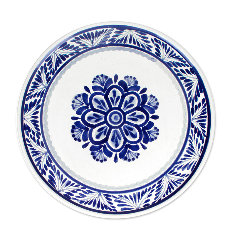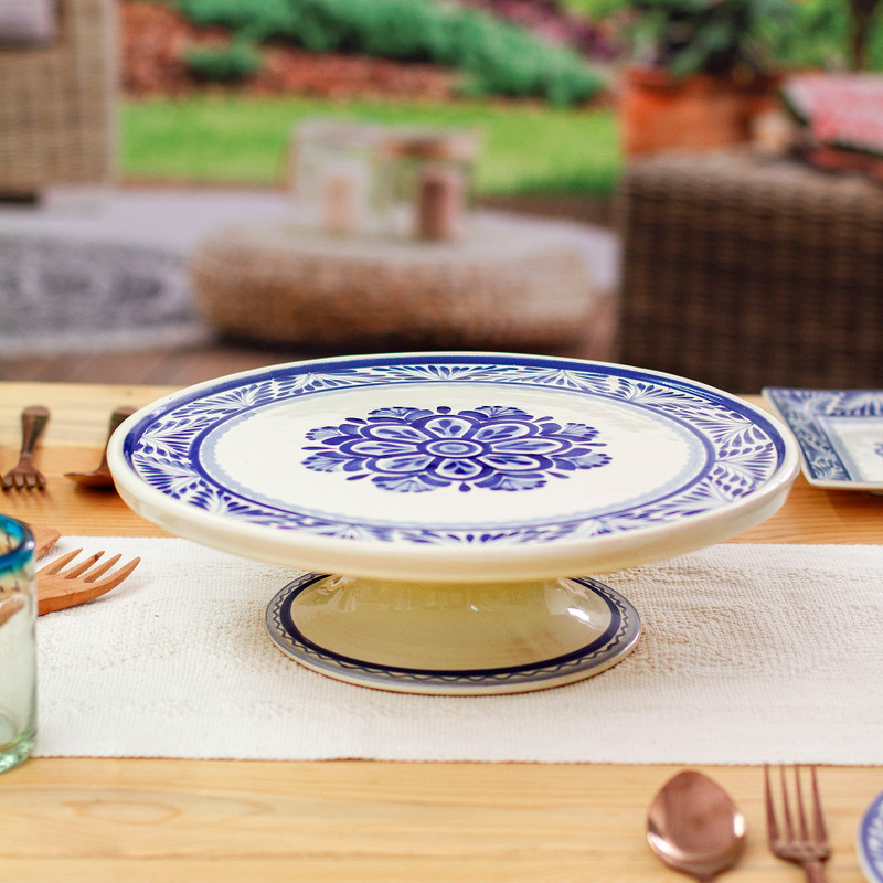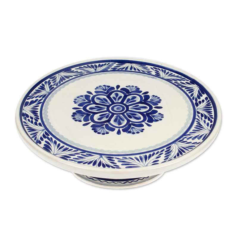 Delivery EstimateLearning his craft around the world, Mexican artisan Gorky Gonzalez works with a passion for preserving the traditional style of Majolica pottery. Working in the time-honored techniques from Guanajuato, he crafts this charming cake stand of ceramic, diligently hand-painting it with sweet blue floral motifs. He signs it "AT" for Alfarería Tradicional (Traditional Pottery).