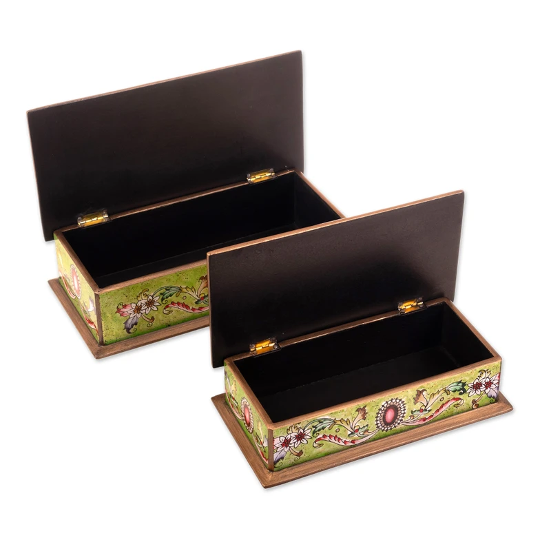 You can find our reverse painted glass boxes 'Ruby' (pair) by Asunta Pelaez in jewelry boxes categories such as Floral Boxes, Reverse Painted Glass Boxes, Wood Boxes and Glass Boxes. Enjoy exploring these sections for other Novica treasures.