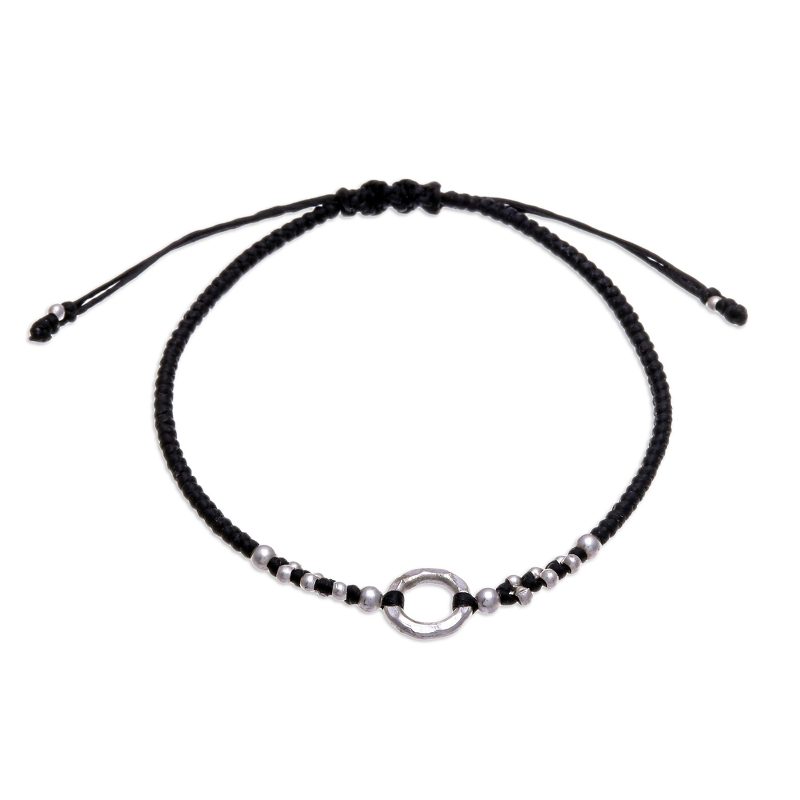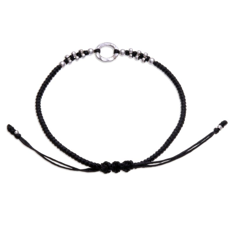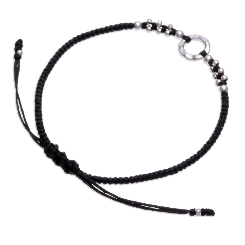 Thailand's Samart Takham handcrafts a braided bracelet from waxed polyester cords. Working with silver, the artisan adds beads that enhance the beauty of the centerpiece, making a modern accessory perfect for any occasion.