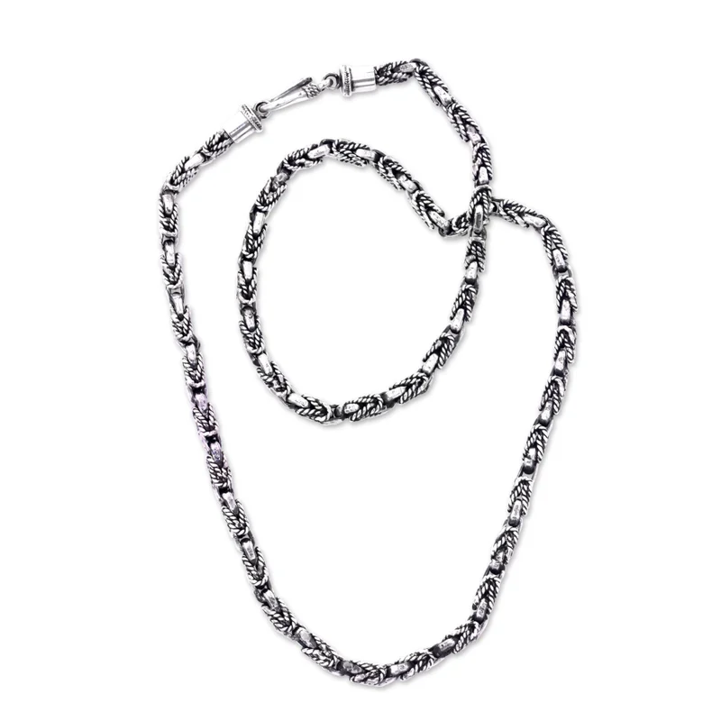 Ornate links conjure the sinuous beauty of sanca bulan, the black python. Working in sterling silver, Bali's Komang Suastra crafts a beautiful and distinguished chain necklace.