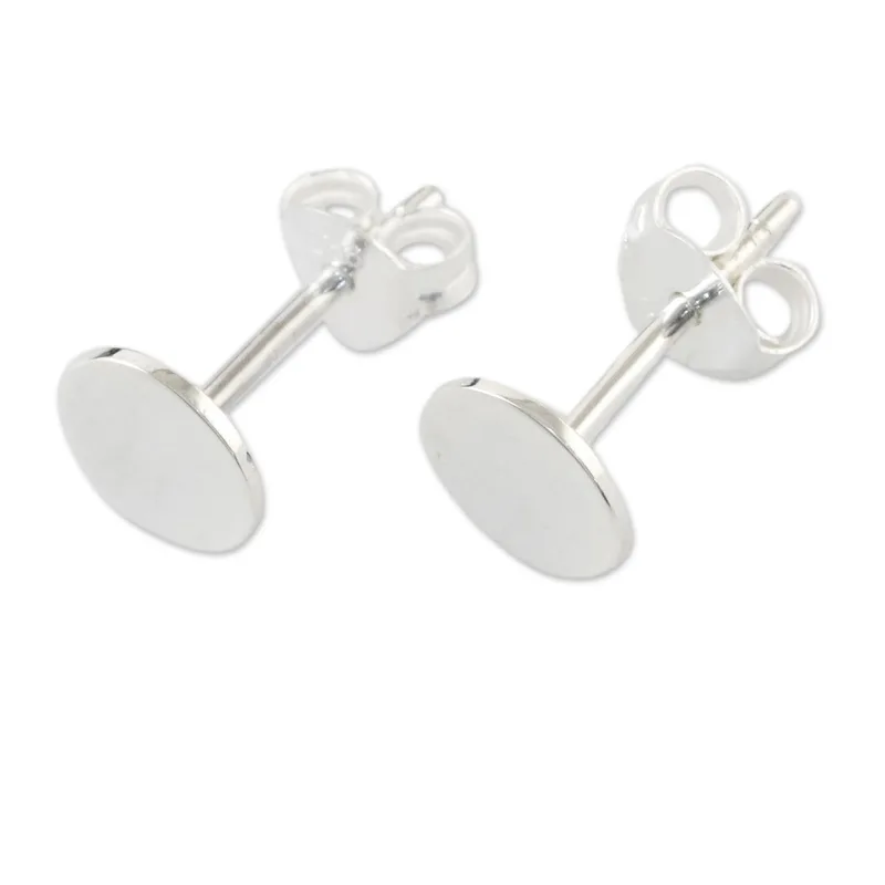 Shimmering sterling silver creates a luminous glow on these simple, attractive earrings. Designed by artisan Lalana of Thailand, the petite stud earrings are circle-shaped.