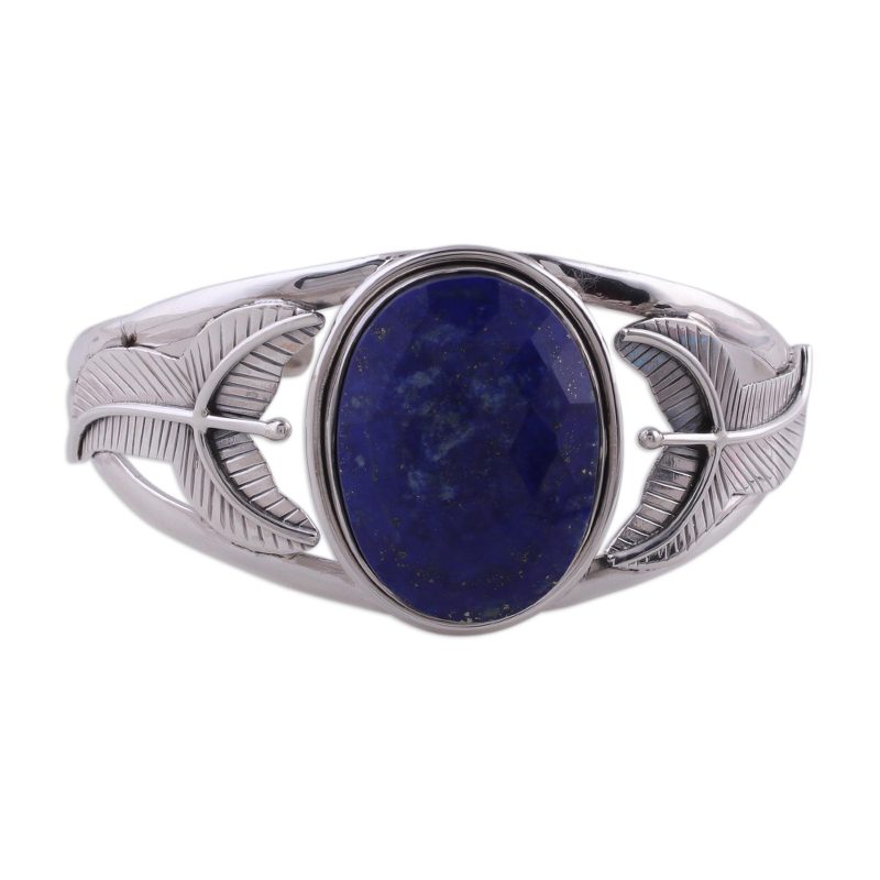 A mesmerizing oval of lapis lazuli nestles in hand-crafted silver settings. The stone of Sagittarius and Aries, lapis is believed to heighten awareness. Neeru Goel designs this majestic cuff bracelet to showcase a 35 carat, faceted gemstone.