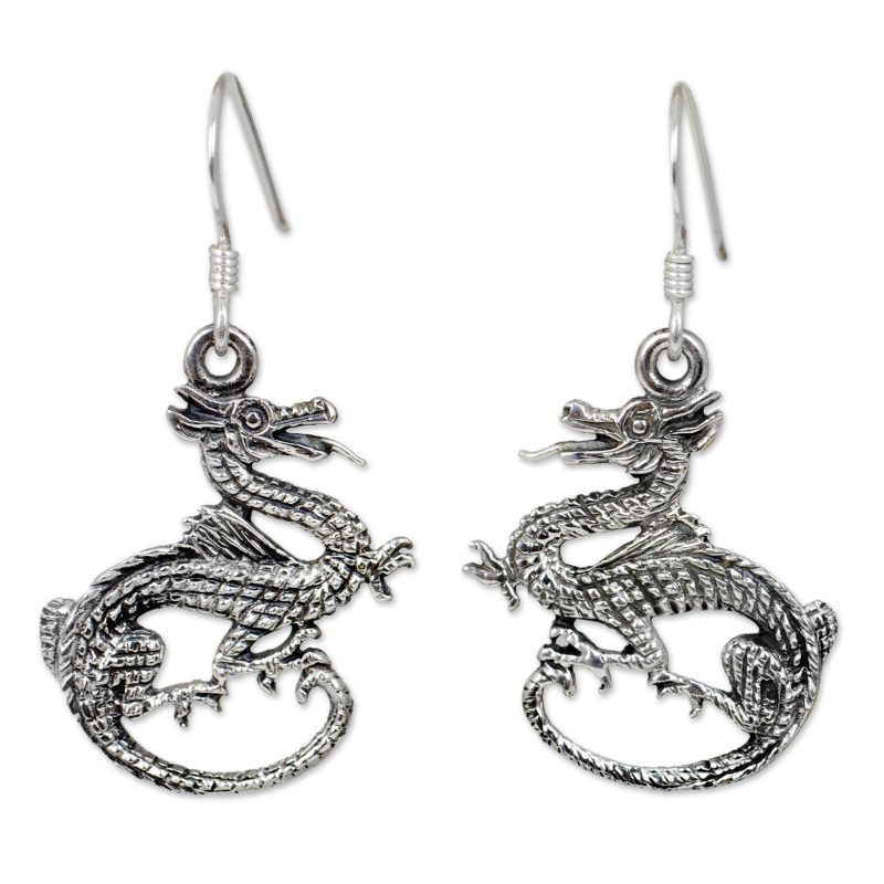 Backed by our 100% Happiness GuaranteeSoaring through the skies with fierce elegance, two Asian dragons dance an eternal dance of love. Detailed in sterling silver, they are transformed into an admirable pair of earrings by Thailand's Wadarat Supasirisuk.