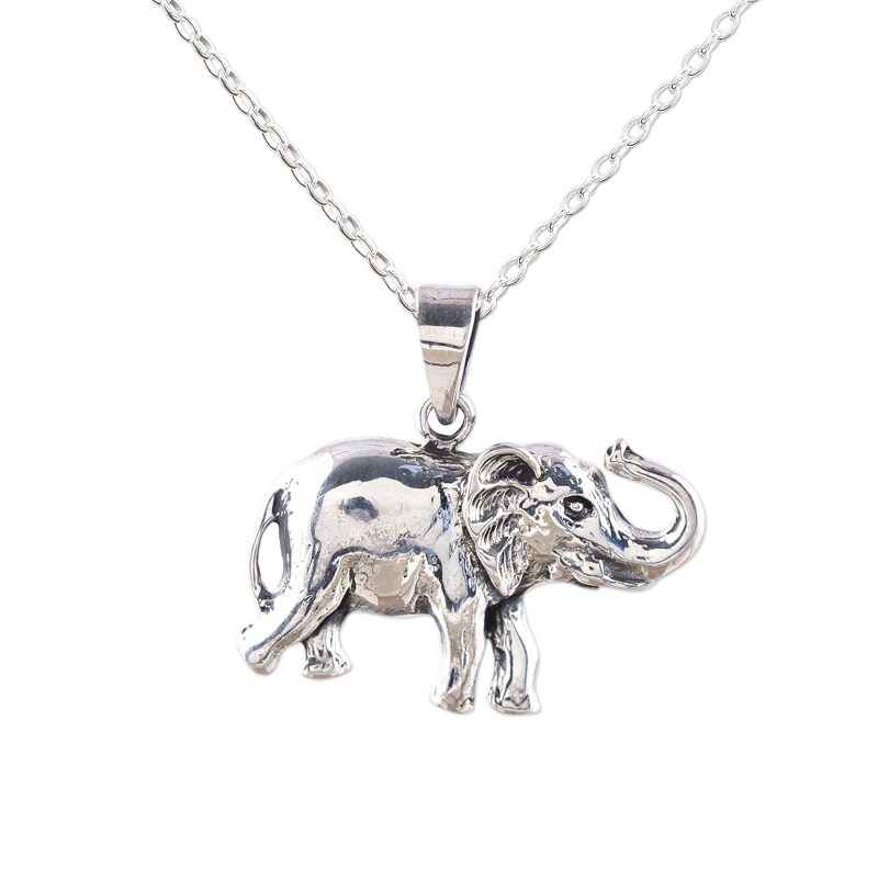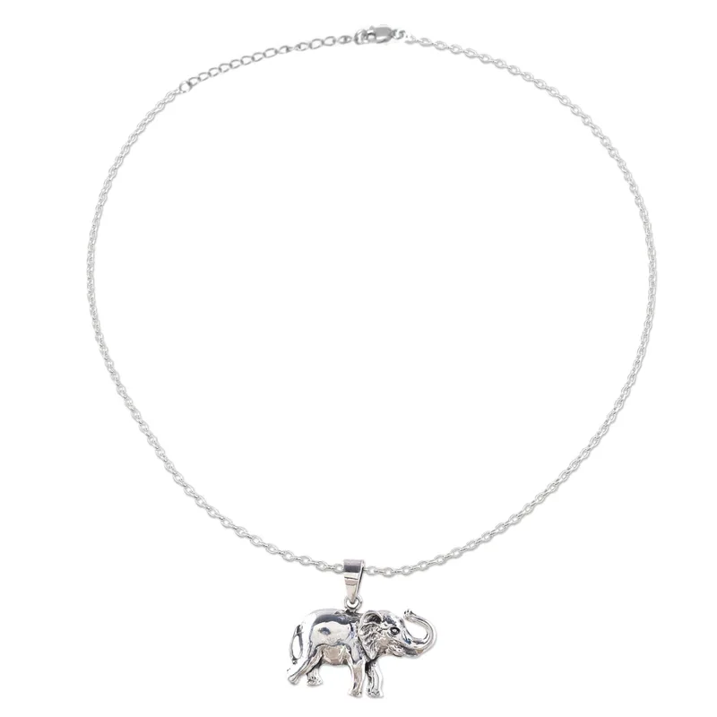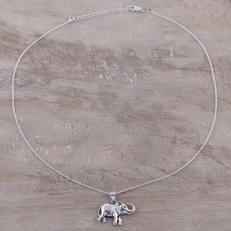 A happy elephant gallops along with trunk held high in this handcrafted sterling silver pendant necklace. Designed by Neetu Barathi of India, the elephant pendant hangs from a sterling silver cable chain that has an extender for ease in adjusting the length.