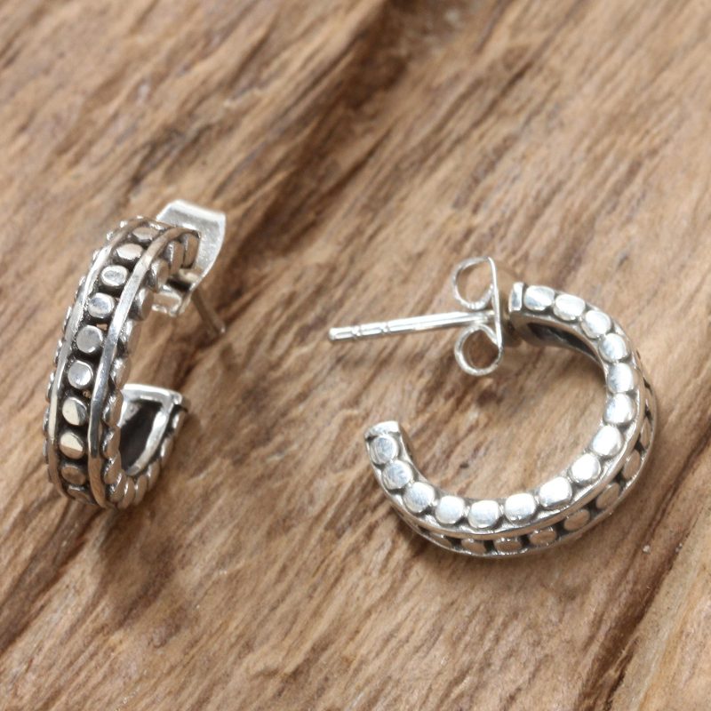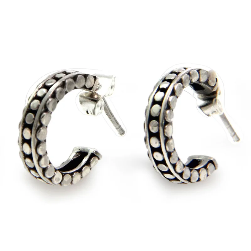 Elegant with distinct Balinese artistry, these half-hoop earrings are captivating. Komang Wijayana presents a design that is crafted by hand from sterling silver with oxidized contrasts.