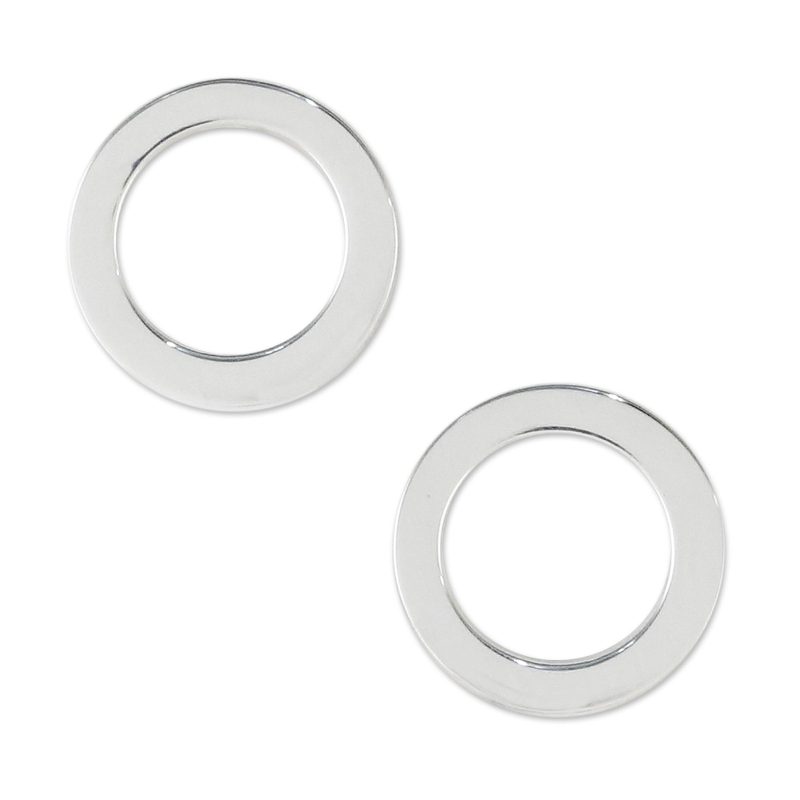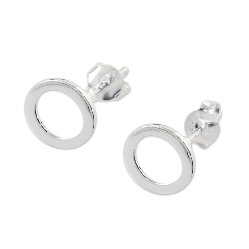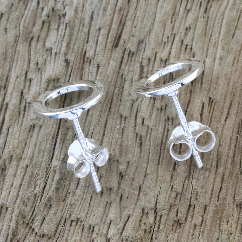 From Thai artisan Lalana comes this simple yet lovely pair of stud earrings. Handcrafted from sterling silver, each earring is shaped like a circle with an open interior.