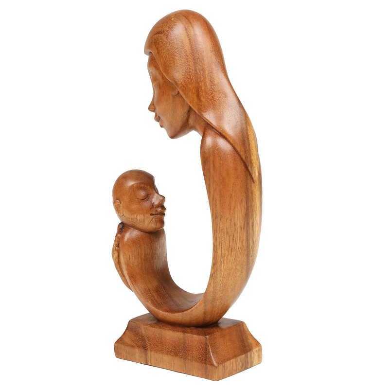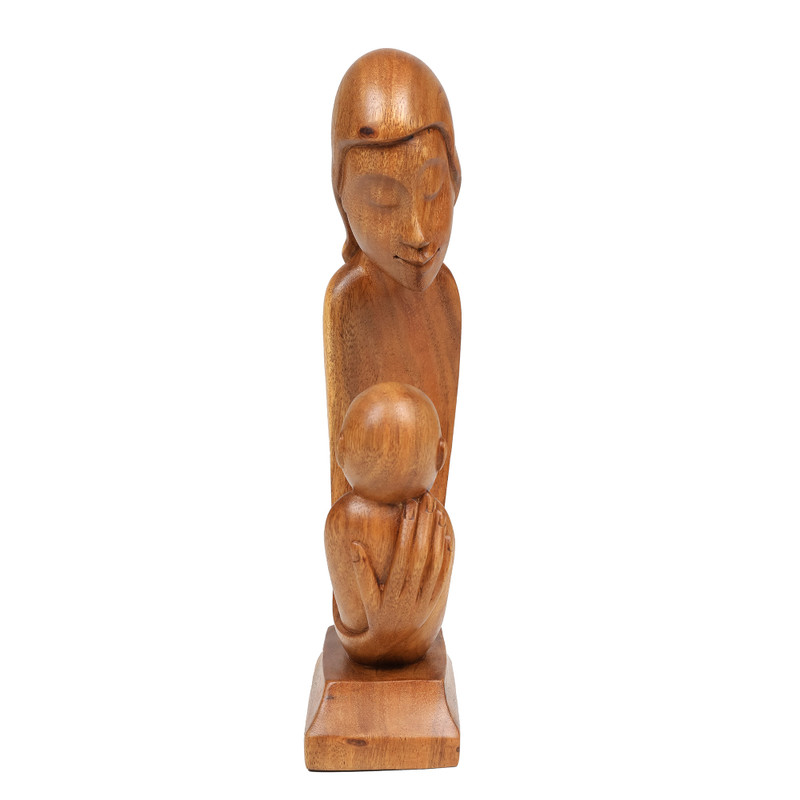 The strong bond between a mother and her child inspires a magnificent suar wood sculpture crafted in the prosperous lands of Bali. Eka's newest artwork is an homage to filial love, depicting an abstract scene of a mother carrying her baby tenderly. The piece also has a polished finish, which enhances its natural hue and wood grain pattern.