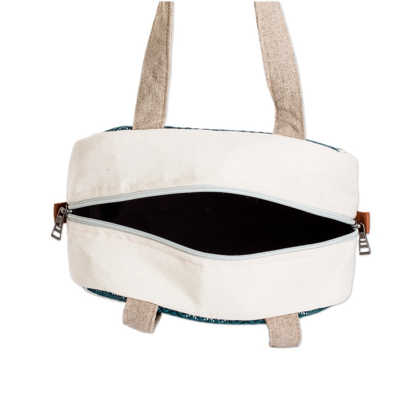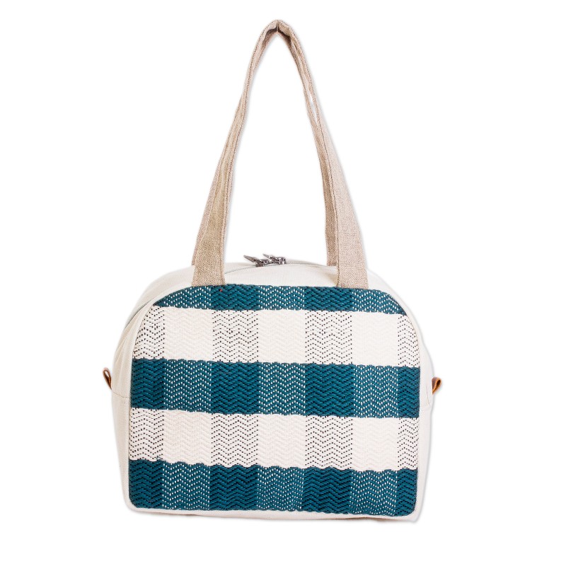 Express your stylish side through squares and intense colors with this sublime creation woven by the talented artisans from Guatemala's Life and Hope Women's Association. Showcasing the elegant beauty of the classic checkered pattern, the artisans loom refined cotton yarns in ivory and viridian hues to create this chic handbag, equipped with generous space, comfortable handles and a handy zippered closure.