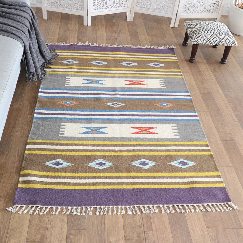 You can find our wool area rug 'Lively Purple' (4x6) by Sonik Sethi in area rugs categories such as Geometric Area Rugs, Hand Woven Area Rugs, Wool Area Rugs and Solids and Handloom Area Rugs. Enjoy exploring these sections for other Novica treasures.