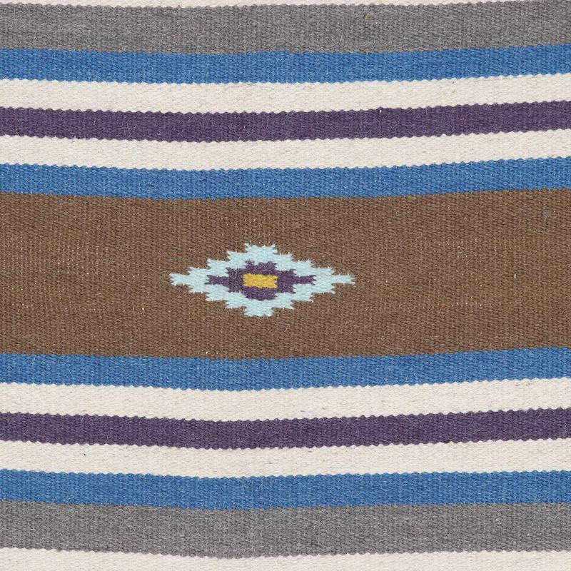 Stripes and geometric motifs are present in an elegant area rug presented by Sonik Sethi. Working with wool, Indian artisans handloom the item following a meticulous process that ensures a high-quality creation. The final touch is in the little fringes at each end.