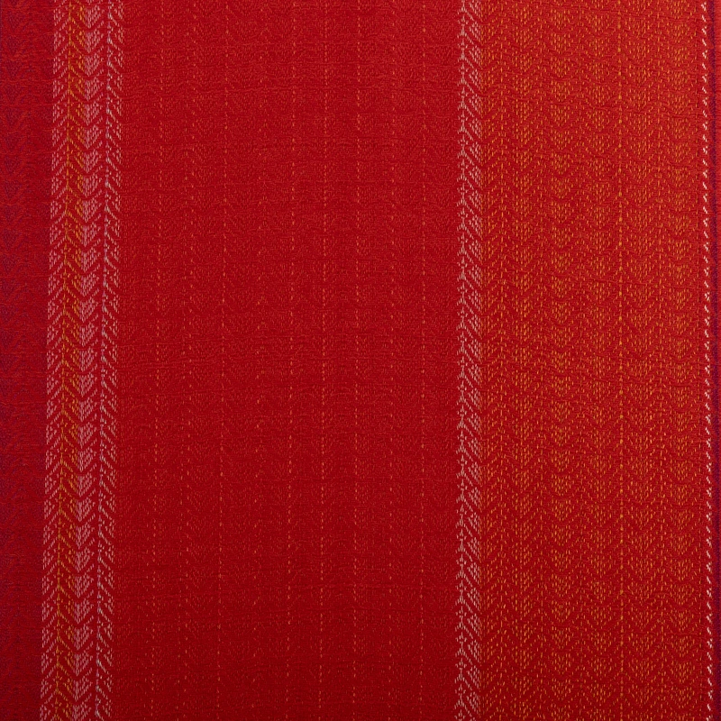 The Peruvian textile arts reach another point of luxurious and captivating beauty with Raquel and Gregor's newest design. The team works on a traditional loom to create this soft scarf, whose yarns of baby alpaca, cotton and rayon allow a comfortable sensation. With red and orange as the main colors, this fringed piece boasts fire's bold grace.