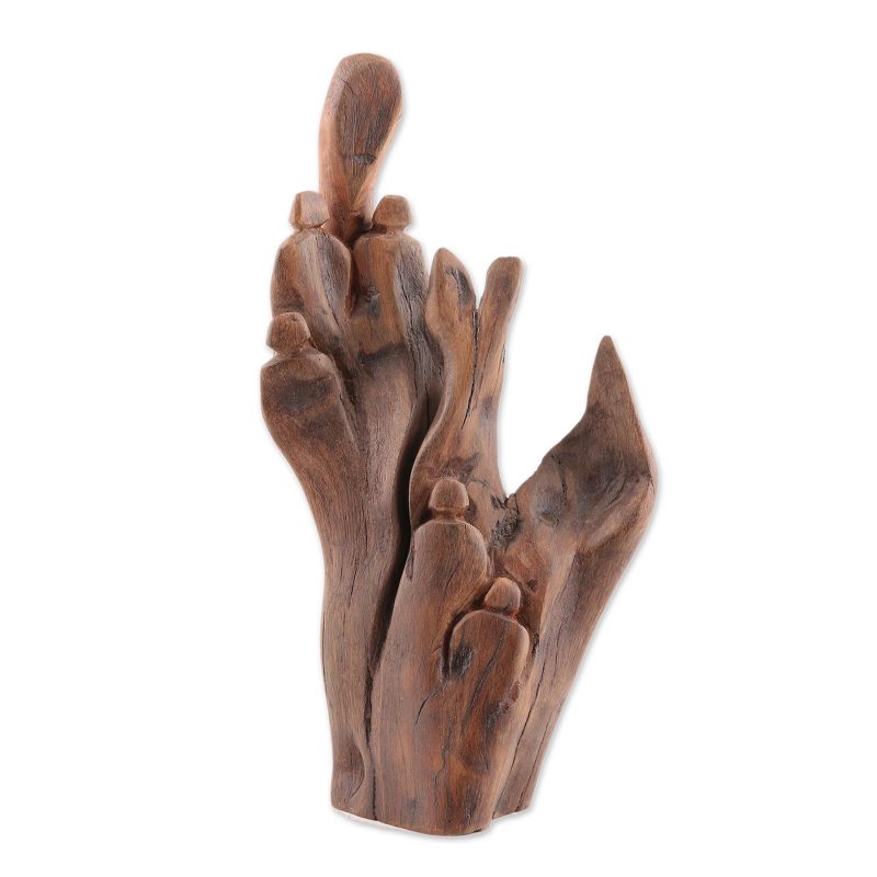 Working with natural sal driftwood, Indian artisan Suresh Pant creates an eco-friendly addition to any home. He showcases the natural form and shape of the wood, carved by hand with various abstract figures that suggest a group of people taking a walk through nature.