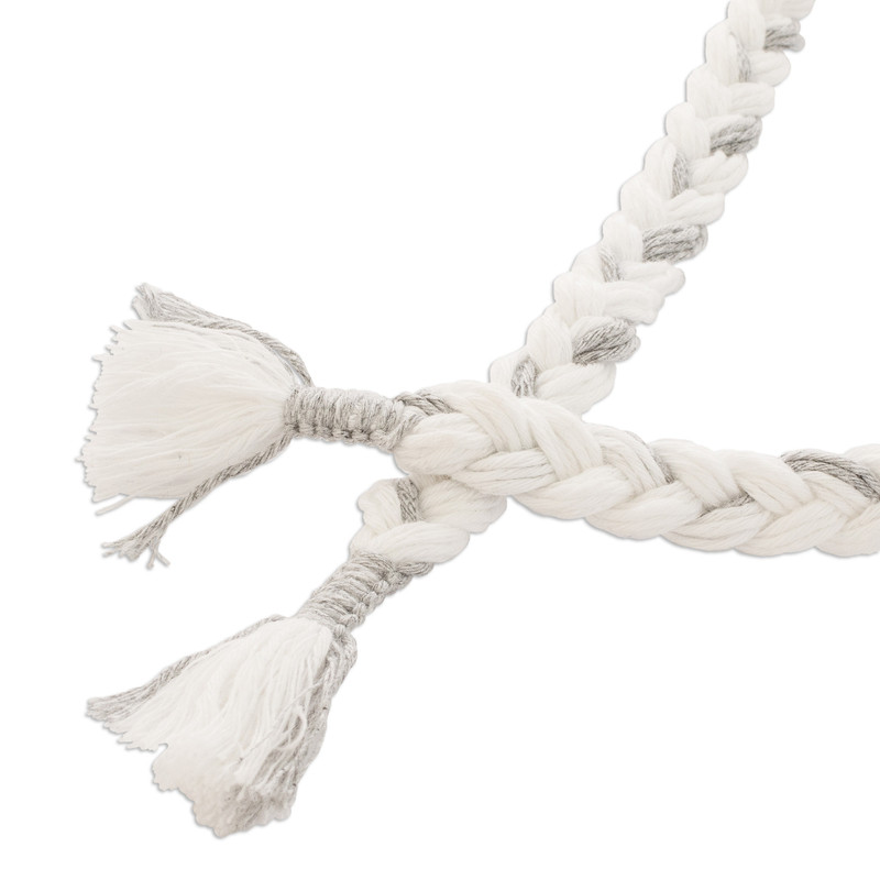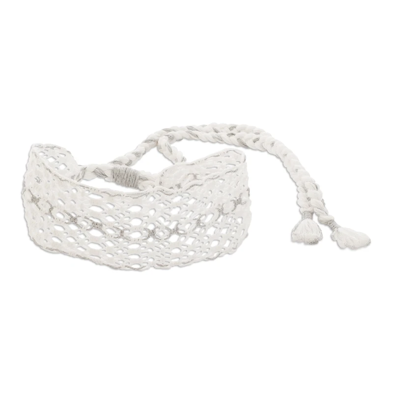 Made with ivory cotton cords, this handwoven macrame headband is the perfect accessory for a carefree and peaceful soul. Costa Rican artisan Hilda Padilla spends hours creating the accessory's meticulous design, adding little grey accents to symbolize balance. On top of that, the headband comes with an adjustable length that allows for a handy fit.