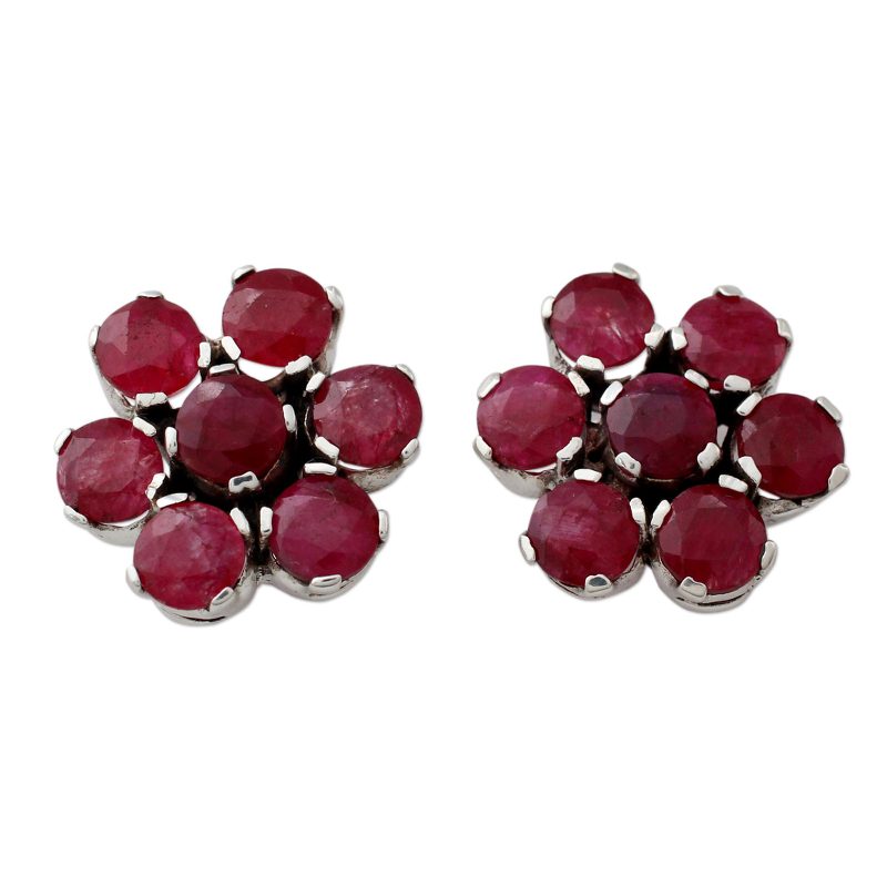 Vibrant and entrancing, seven carats of magenta agate form two dainty little flower blossoms in this pair of earrings from India. Shanker presents these button earrings created using sterling silver and agate gemstones that are sure to impress.