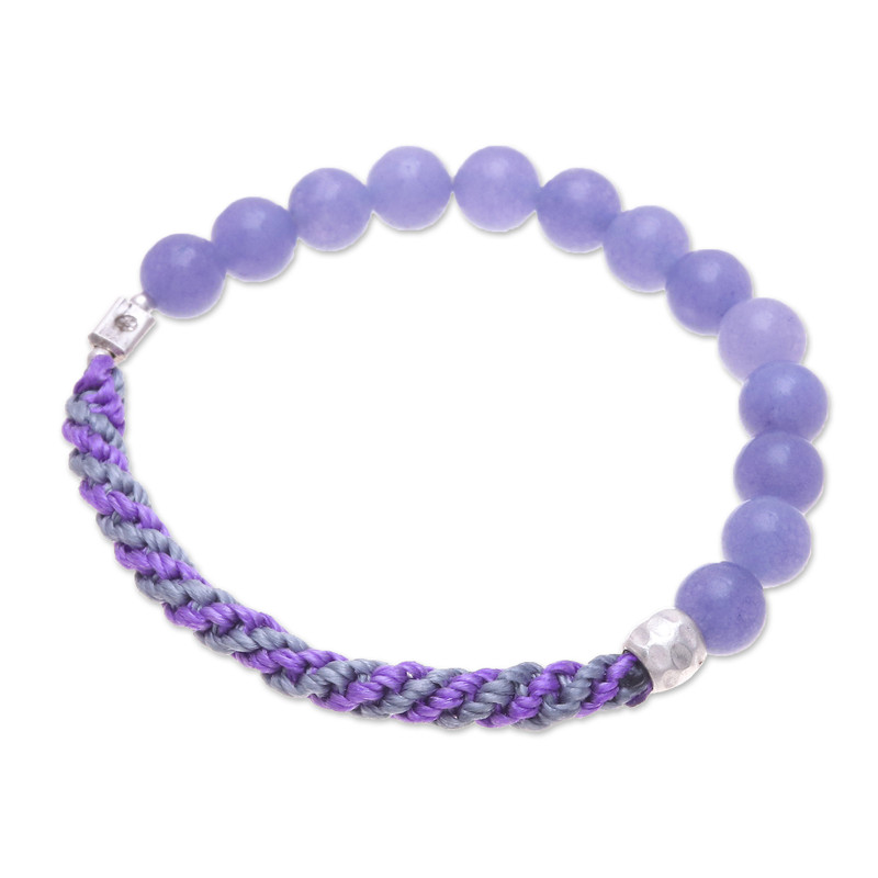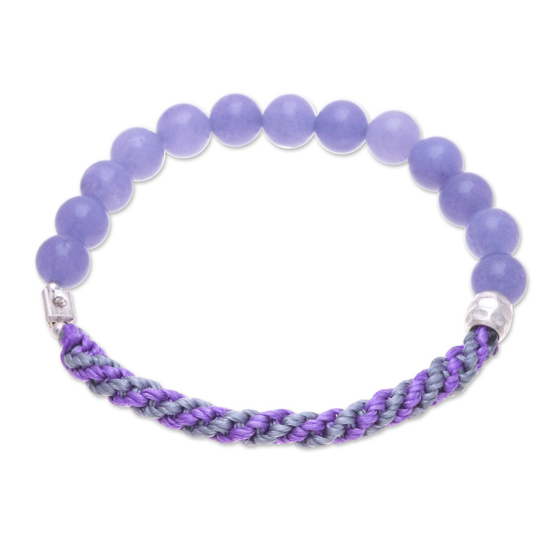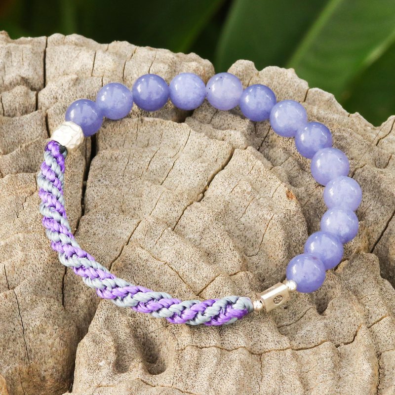 Bringing color and vibrancy to your look, this stunning stretch bracelet features the best of both worlds. It is adorned on one side with lively anhydrite beads for those who love the delicate beauty of gems, while the other showcases a fabulous waxed cord exquisitely knotted using the macrame technique. Thai artisan Kathrine Atthakor's stylish design comes together with the help of sterling silver and hill tribe 950 silver beads, boasting a gorgeous combination of hammered, oxidized and brushed-satin finishes.