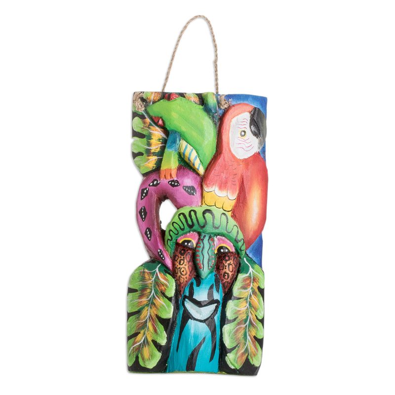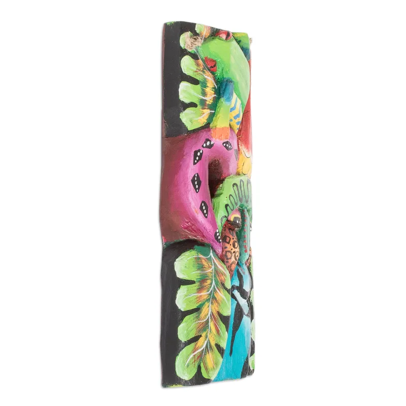 Backed by our 100% Happiness GuaranteeArtisans of the Caronco Maleku Association work with balsa wood to create a hand-painted mask inspired by the fauna of Costa Rica. Colorful tones embellish each detail, enhancing the frog and macaw figures in the artwork, both honoring the region's natural wealth.