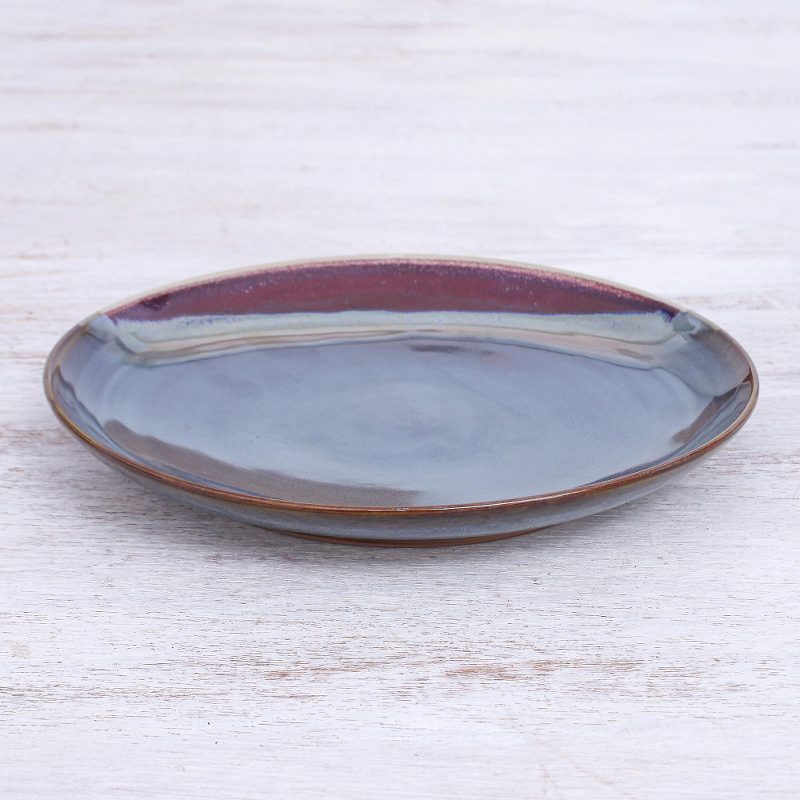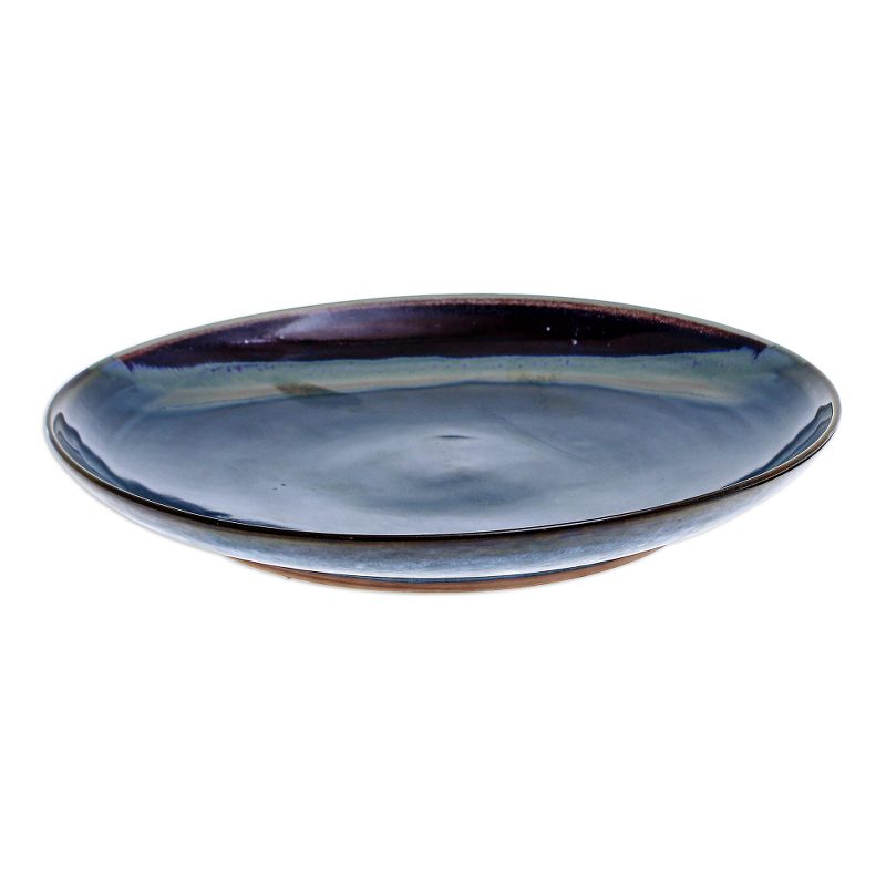 Dinner for one never looked so good. Hand crafted by Thai artisan Duangkamol from ceramic, this lovely round dinner plate is glazed in a glossy indigo color and finished with dark red accents around the edges.
