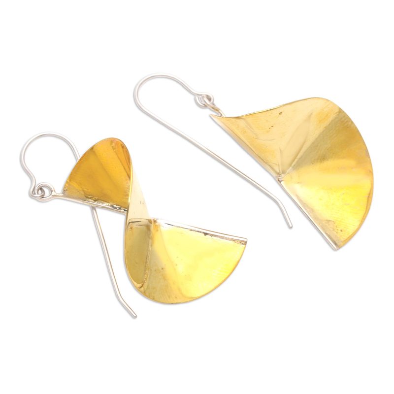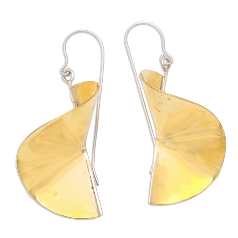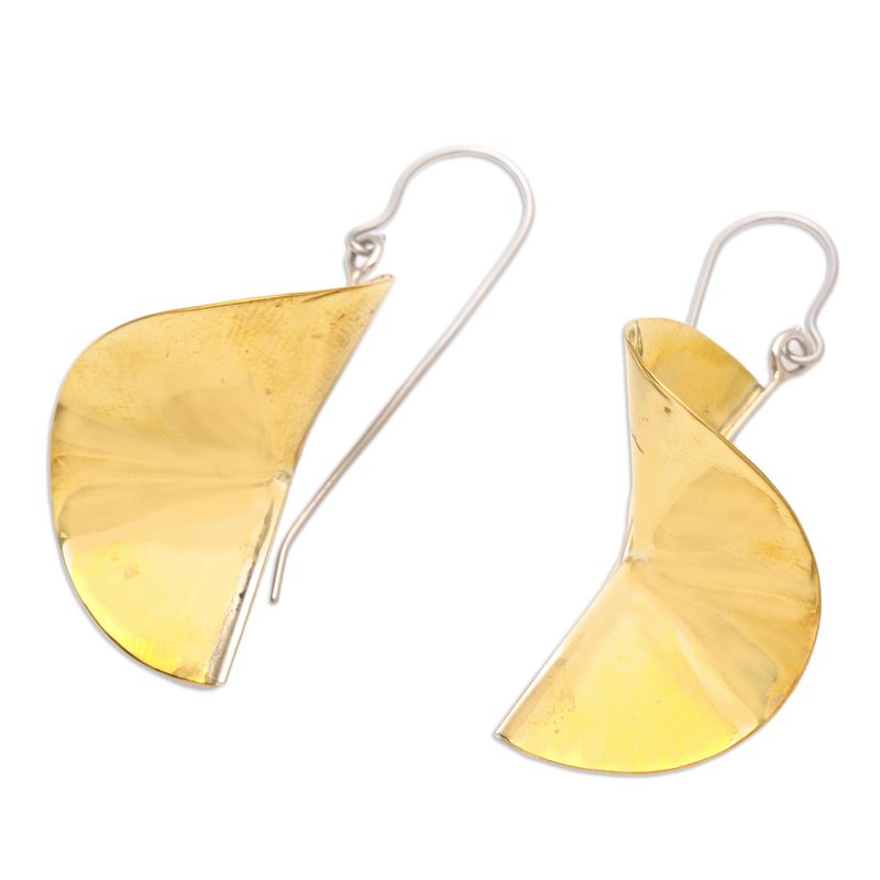 Like the swirling skirt of a dancer, polished brass is alluring in Agus Suryanto's artfully designed earrings. The Javanese artisan shapes the sleek metal into undulating shapes and sets them on stainless steel hooks.