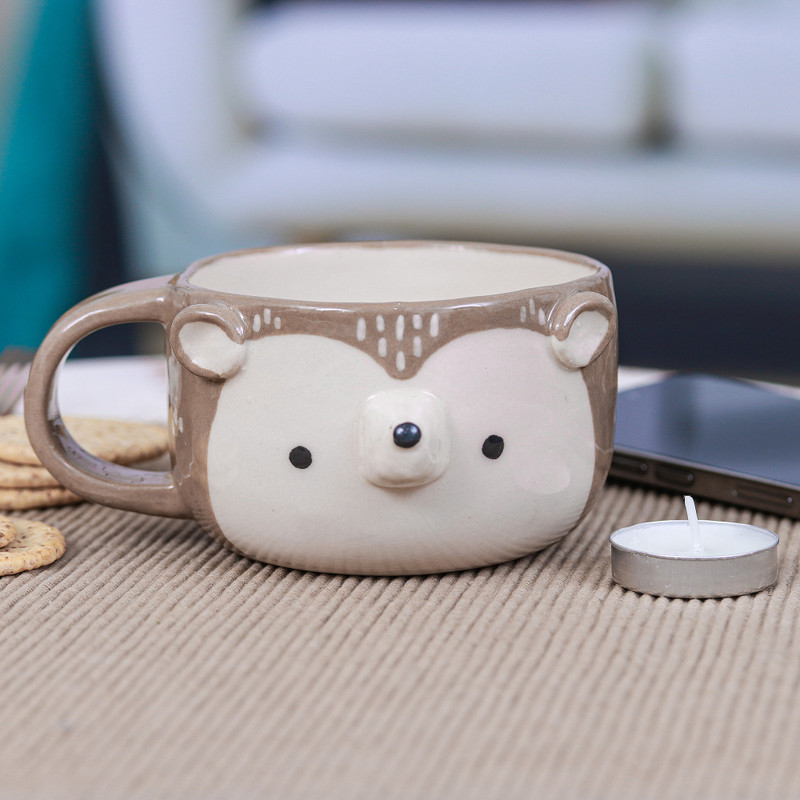 Face the day with a drink infused with a unique aura. Thailand's Paiboon ensures a whimsical moment with this ceramic cup, shaped like a cute porcupine. Handcrafted using artisanal techniques, the piece has a glossy finish.