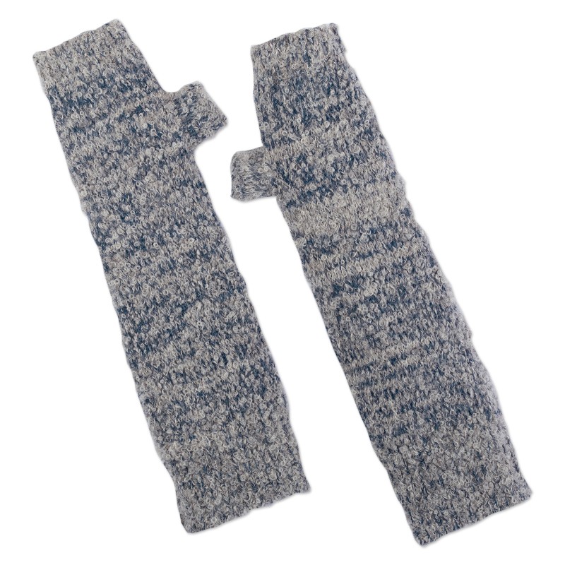 Backed by our 100% Happiness GuaranteeSome winter days require a warm and practical accessory, just like Maritza Oviedo's newest design. Crafted in Peru with traditional techniques, these baby alpaca blend fingerless mittens feature a combination of grey and azure hues embellishing their soft surface, whose handy accents allow for dapper everyday use.