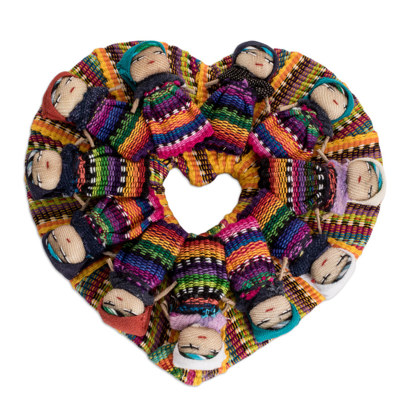 Delivery EstimateArtisan Elias Garcia creates this heart-shaped magnet using worry dolls made by his siblings from the López García Family, who have become well-known for their creative quitapena designs. Working with tools to forge ahead in the field of handicrafts since the age of 12, Elias dedicates himself to carrying on the traditions of his Guatemalan hometown in every piece he creates. According to local custom, this arrangement of worry dolls comforts those who face problems and resolves their fortune.