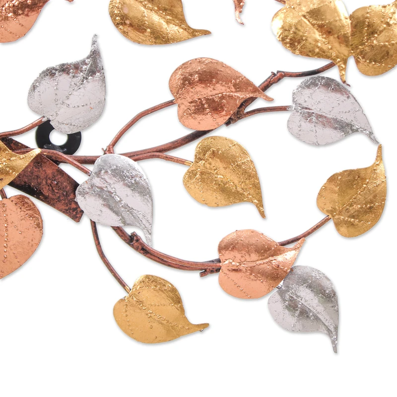 Backed by our 100% Happiness GuaranteeGolden, silver and copper leaves welcome you to a realm where nature exudes merry sensations. Made to infuse your spaces with harmonious energies that invite you to explore your inner self, Thai artisan Narakorn Wongnitkorn's newest steel wall art boasts accents of metallic foil to create a beautiful illusion around an enchanting tree.